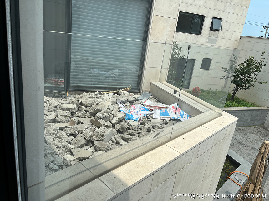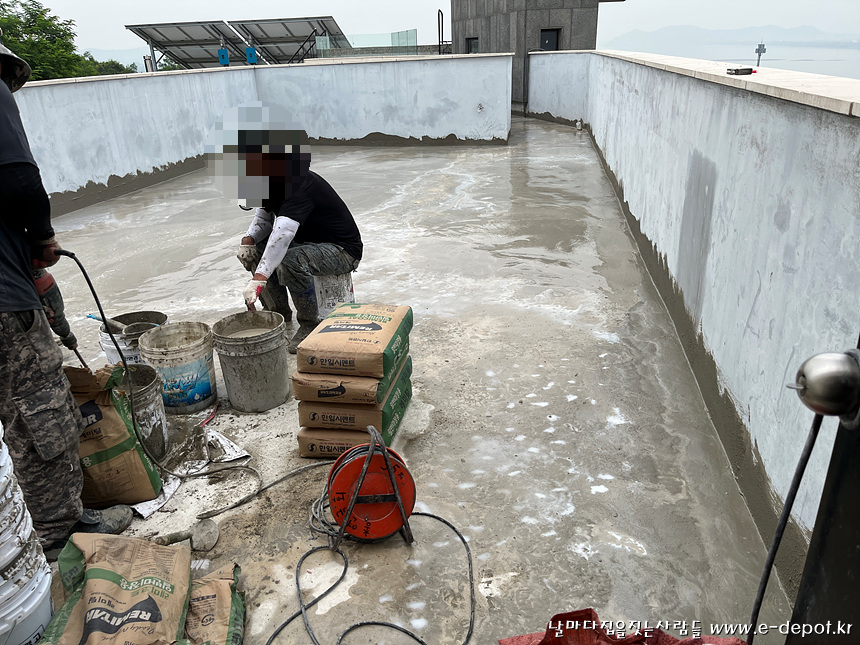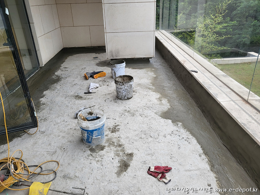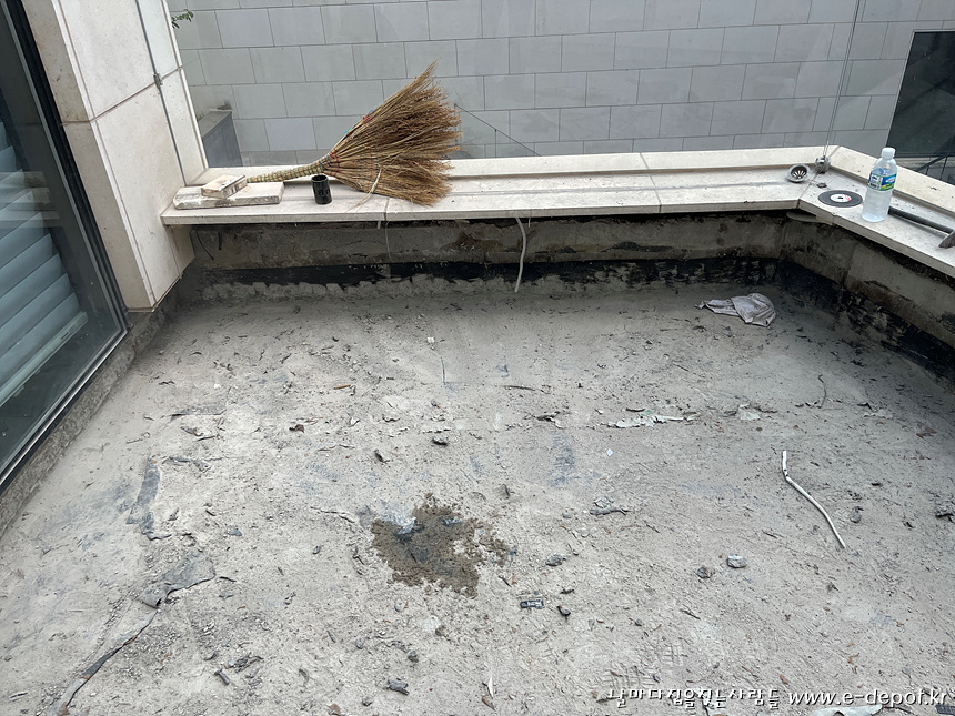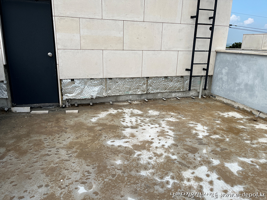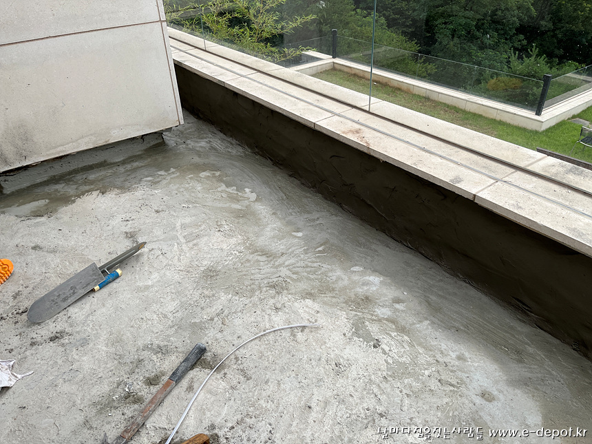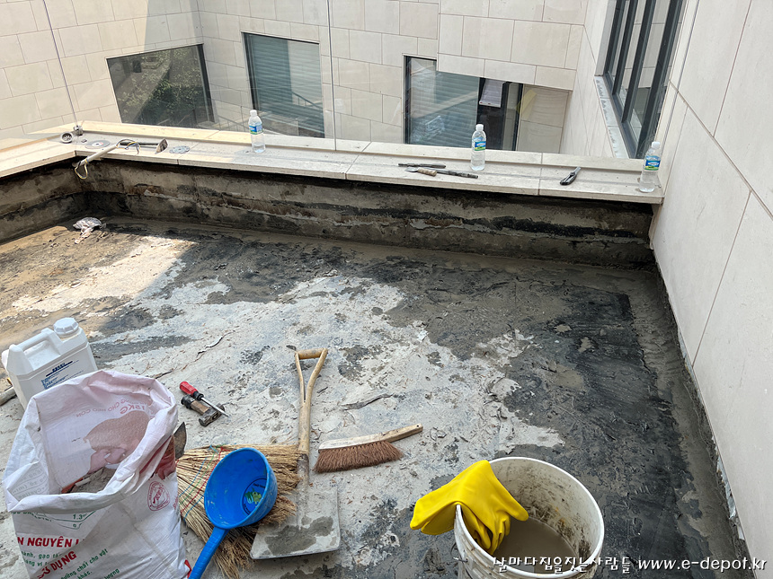 지붕층은 기존의 석재타일을 제거 한 후 방수를 진행하였습니다.