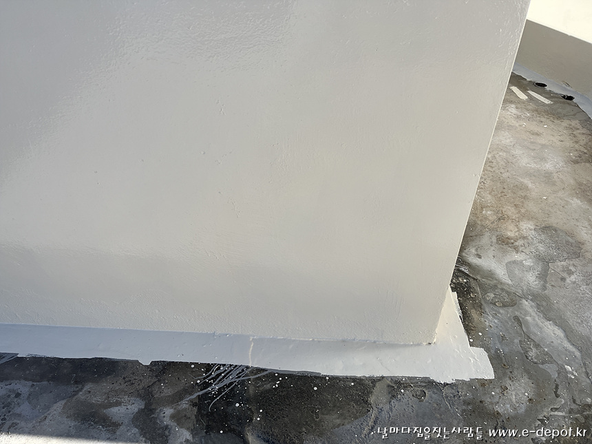 파라펫 벽은 면갈이를 하고 코너부위는 우레탄을 보강한 후 벽 전체를 우레탄으로 마감하였습니다.