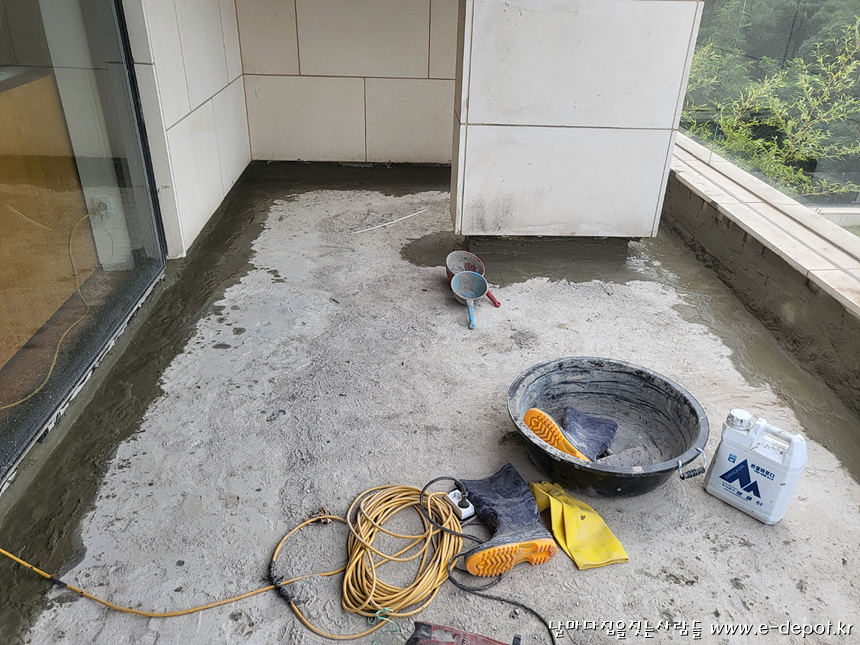 발코니 바닥은 초속경방수를 하였습니다.