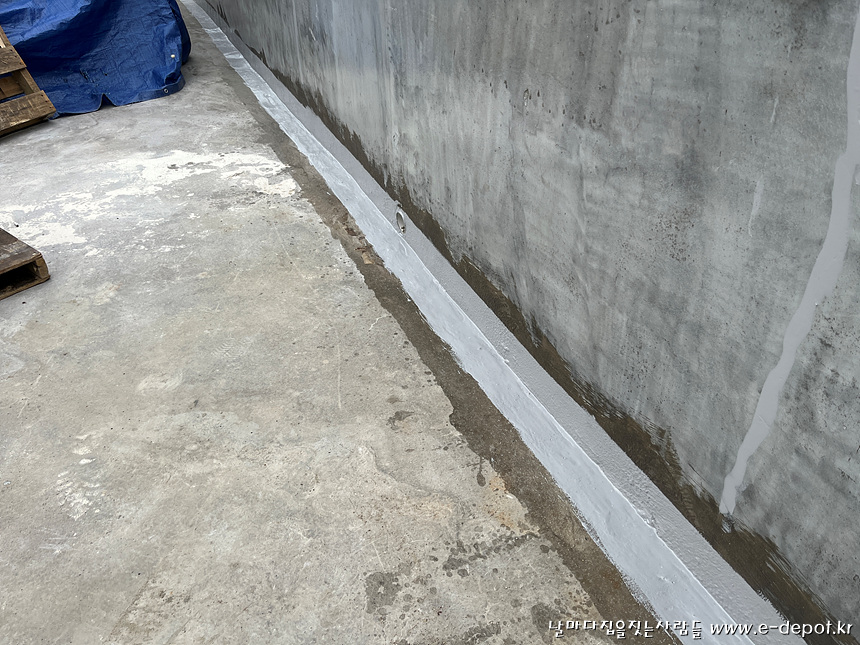 코너부위와 바닥에 초속경 방수를 마친 사진입니다.