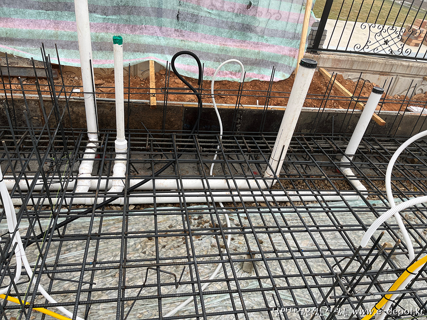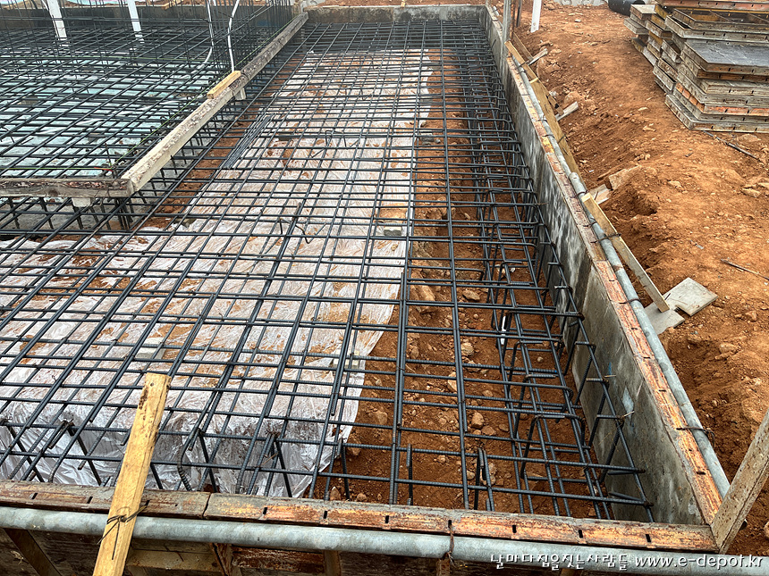 이번 포스팅은 지난 기초1차 테두리 지중보 작업에 이어 기초2차 바닥작업과 외부 되메우기 및 외부배관 부설공사과정입니다.