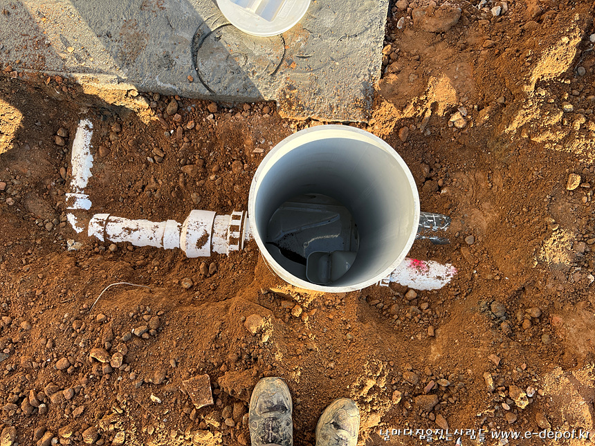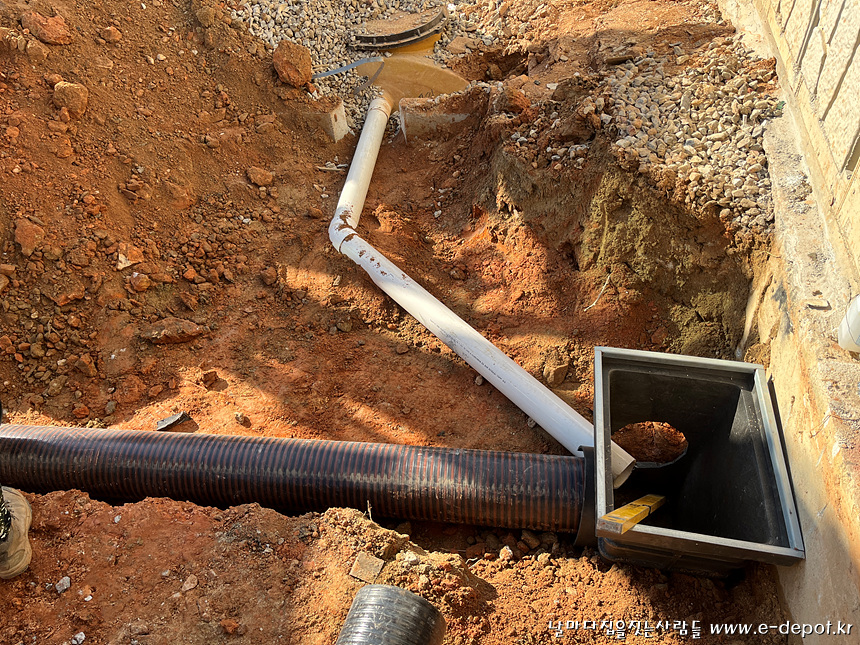 터파기 하면서 인접대지 주택의 우수관이 파손되어 보수를 먼저 한 후 우수관 연결을 진행하였습니다.