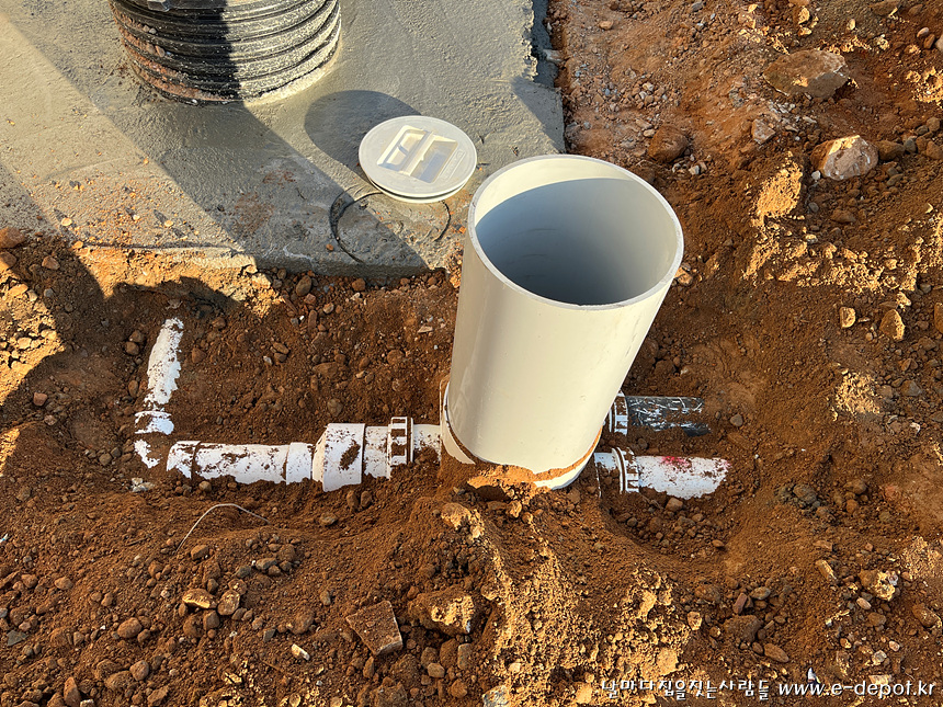 파주전원주택시공 : 기초바닥 콘크리트 타설 후 외부배관 및 되메우기공사