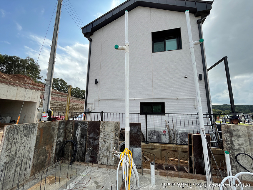 날마다집을짓는사람들의 파주전원주택시공 : 철근콘크리트 옹벽,스라브 형틀거푸집조성과 철근배근 및 콘크리트타설까지의 골조공사과정이었습니다.