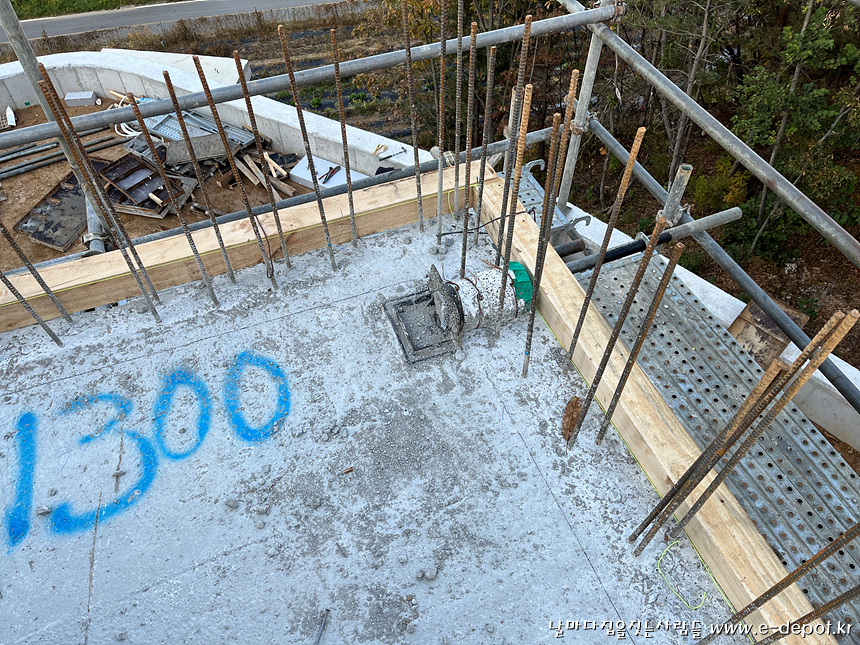 2층 바닥 콘크리트 타설 사진은 촬영을 못했고 콘크리트 타설 후 익일 촬영한 사진입니다.