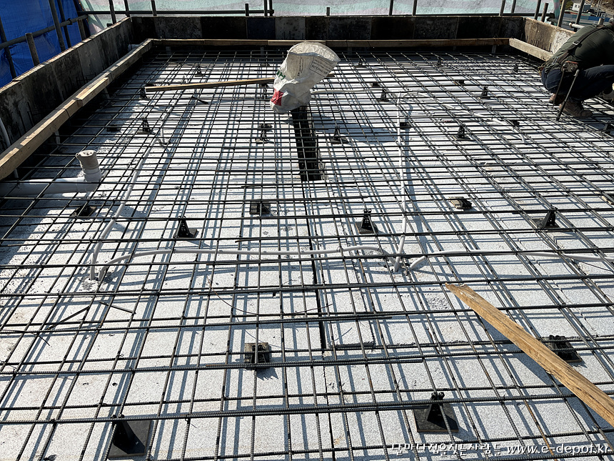 1층 스라브(2층 바닥)의 철근배근 순서는 보철근을 먼저 배근한 후 스라브 철근을 배근하는 순으로 진행합니다.