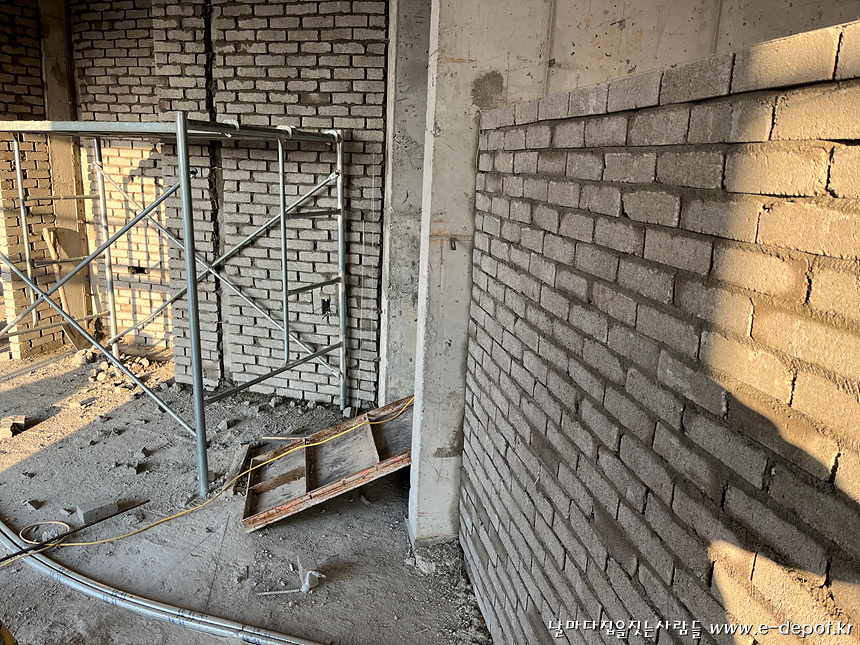 내부 칸막이 시멘트벽돌 시공사진입니다.