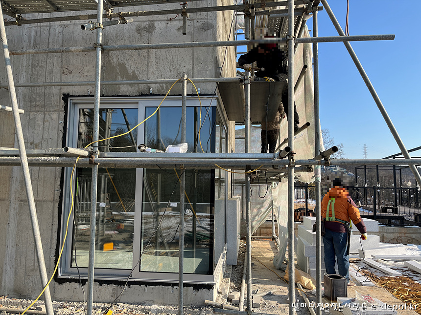 날마다집을짓는사람들의 파주시 문산읍 내포리 전원주택신축 샷시설치,벽난로시공,임시안전난간설치과정이었습니다.