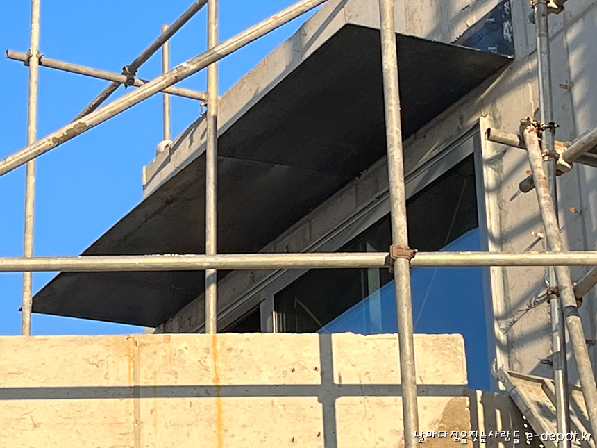 샷시 상부에 철판을 가공하여 처마조성작업을 진행하였습니다.