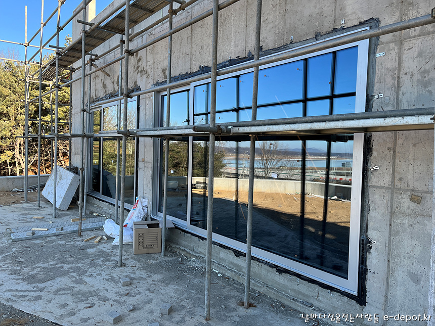 파주시 문산읍 내포리 전원주택신축 샷시설치,벽난로시공,임시안전난간설치 [집짓기/주택신축/건축적산/공사견적]
