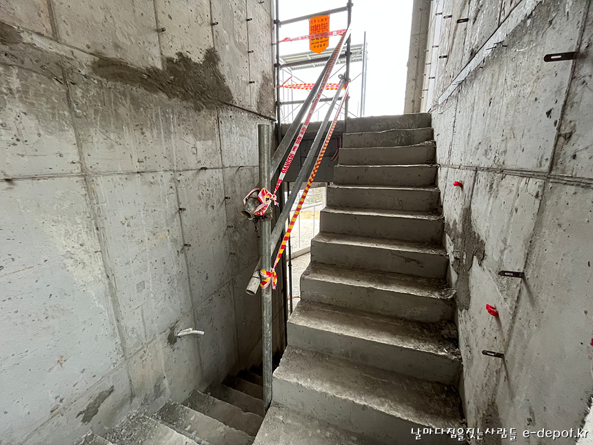 마감공사를 하다보면 안전난간이 걸림돌이 되는경우가 다반사이기 때문에 공정에 따라 적절하게 조정하고 안전에 주의를 기울여야 겠습니다.