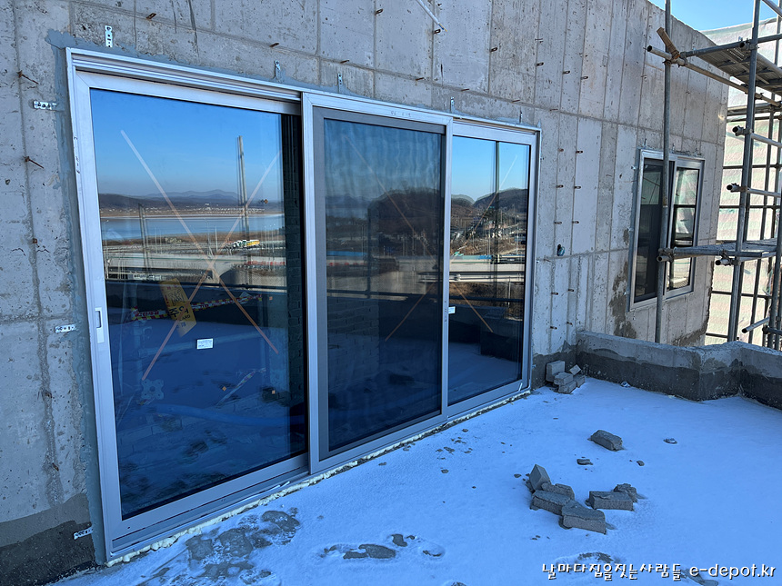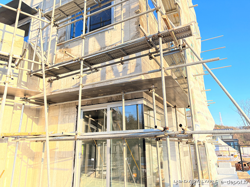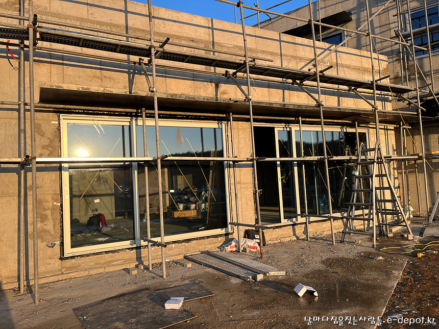 날마다집을짓는사람들의 파주시 문산읍 내포리 전원주택신축 샷시설치,벽난로시공,임시안전난간설치과정이었습니다.