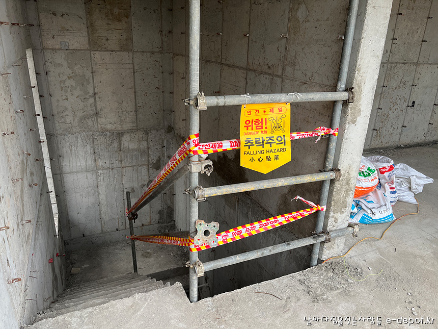 마감공사를 하다보면 안전난간이 걸림돌이 되는경우가 다반사이기 때문에 공정에 따라 적절하게 조정하고 안전에 주의를 기울여야 겠습니다.
