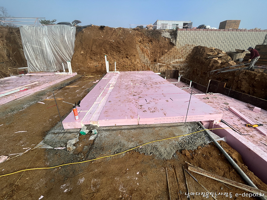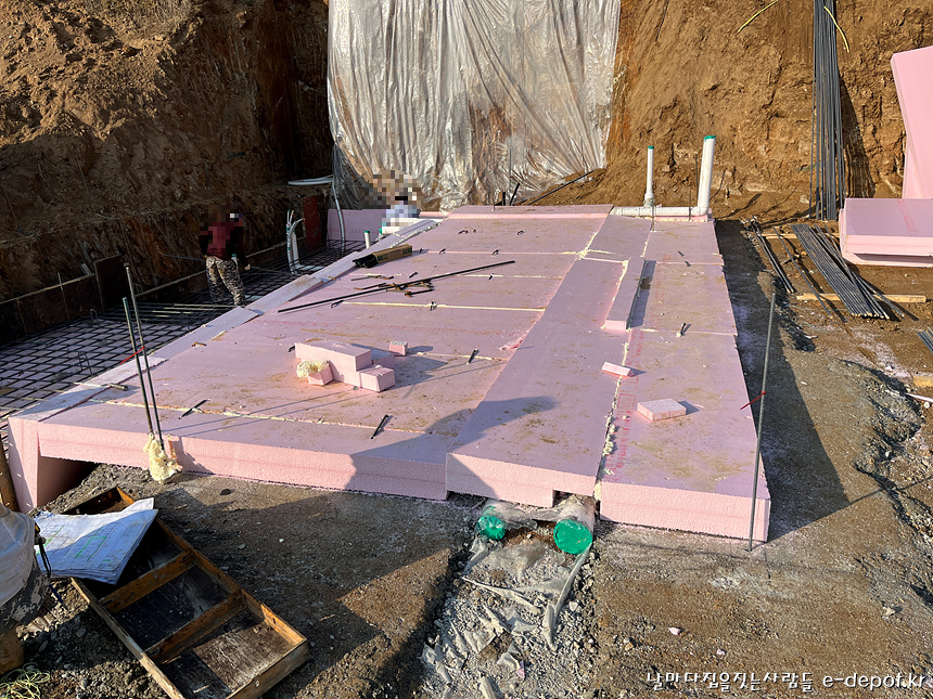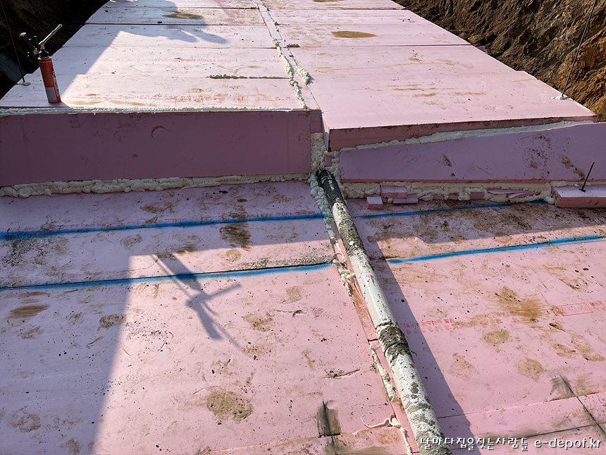 기초 단열재 까는 작업이 마무리 되었습니다.
