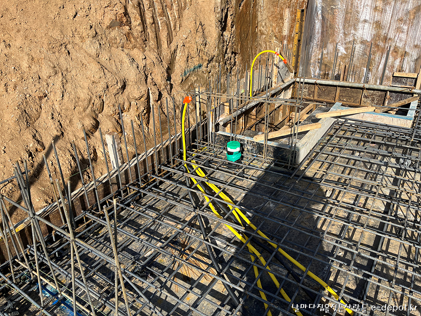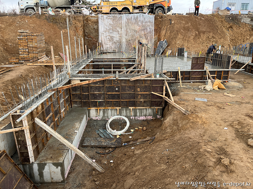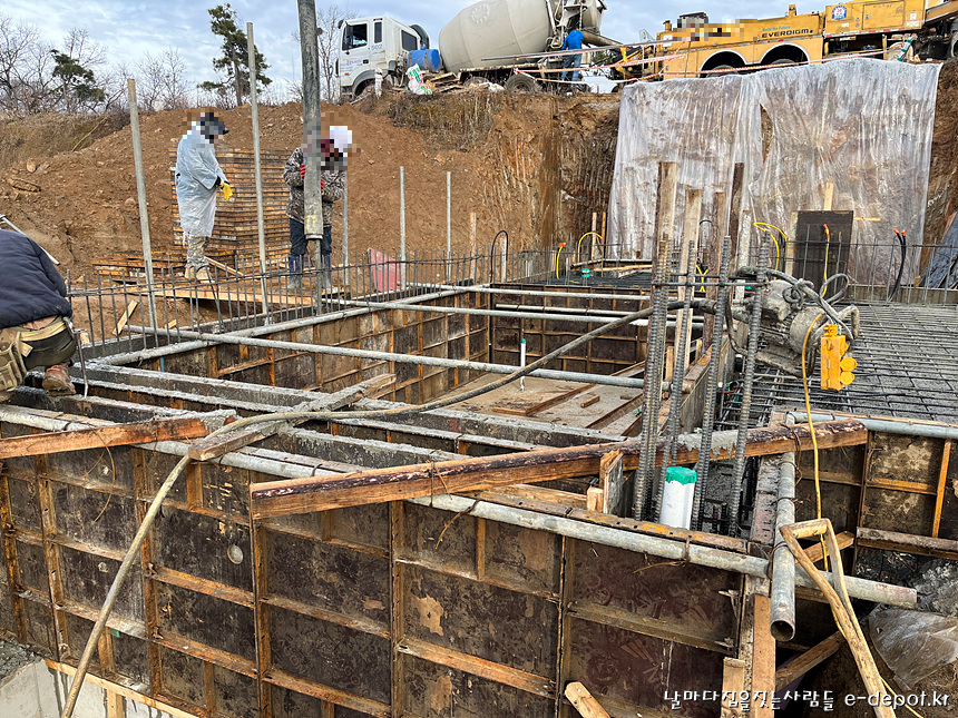 날마다집을짓는사람들의 풀빌라펜션신축 2차 기초공사 철근배근 후 콘크리트 타설과정이었습니다.