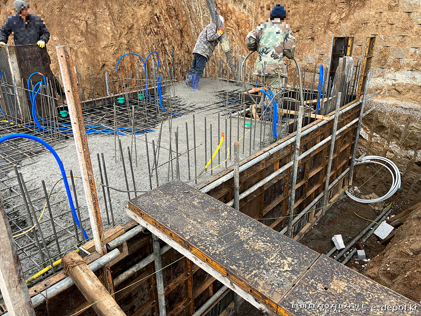 풀빌라펜션신축 2차 기초공사 철근배근 후 콘크리트 타설