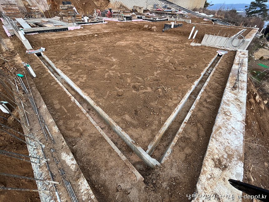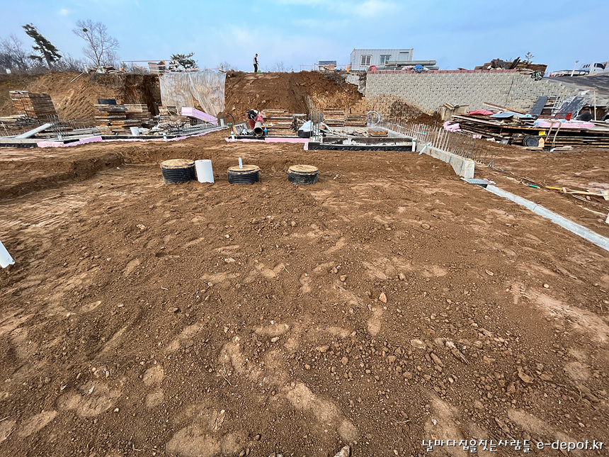 날마다집을짓는사람들의 연천풀빌라펜션신축 기초의 마무리 되메우기작업 과정이었습니다.