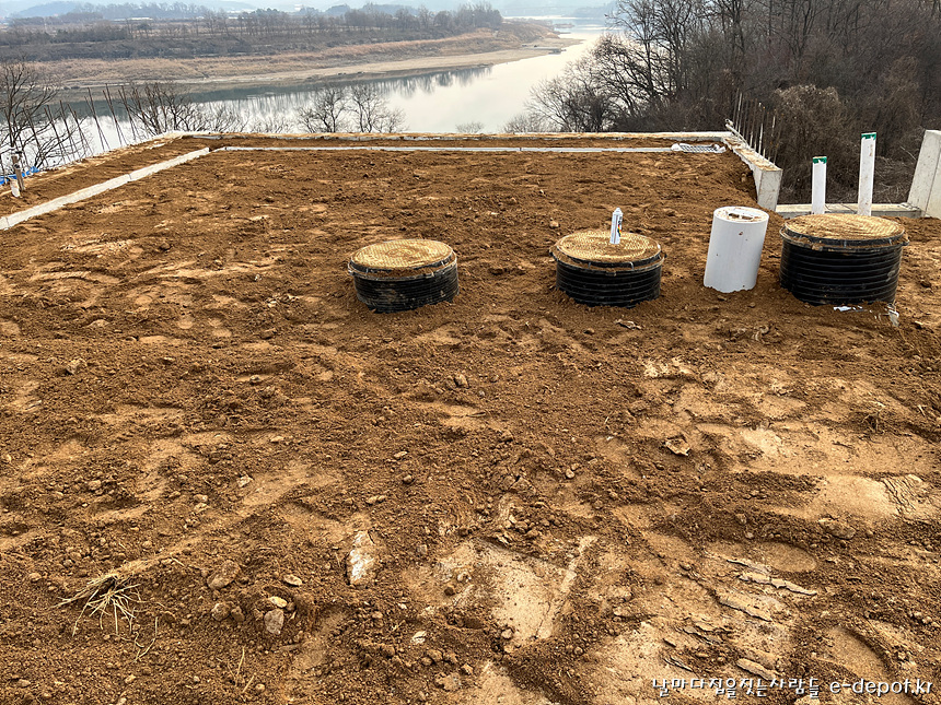 1층 정원이 들어설 마당에도 되메우기를 한 후 평탄작업을 하였고 우기에 대비한 수로관을 설치하였습니다.