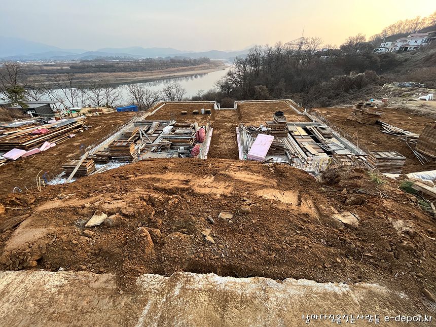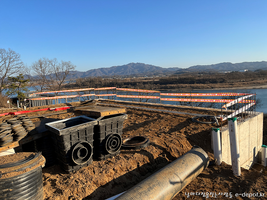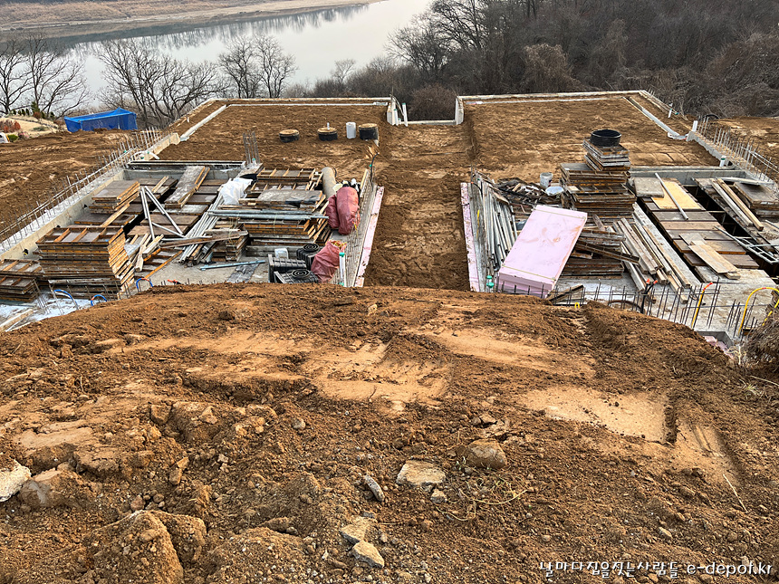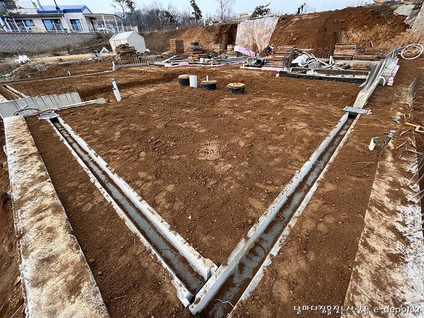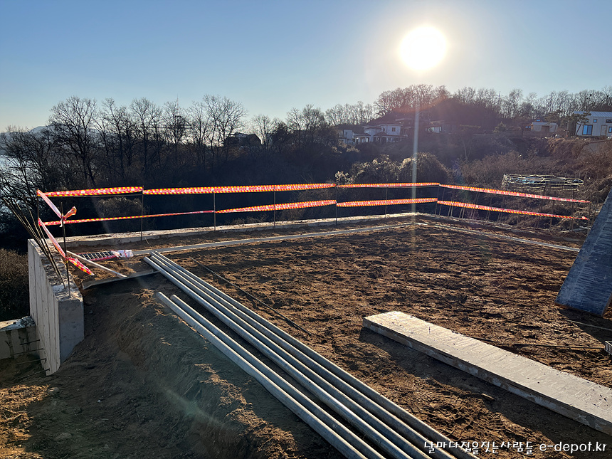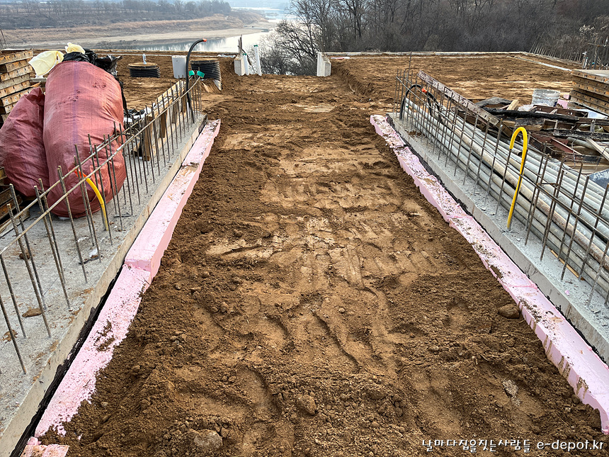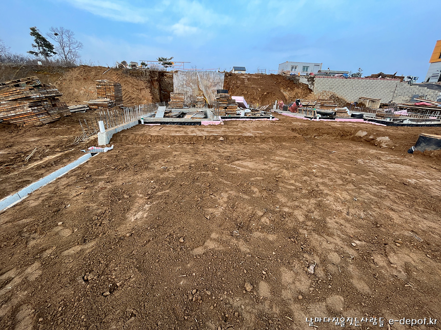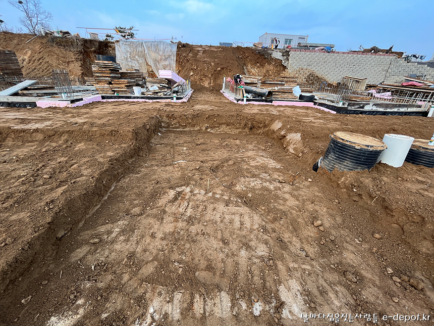 날마다집을짓는사람들의 연천풀빌라펜션신축 기초의 마무리 되메우기작업 과정이었습니다.