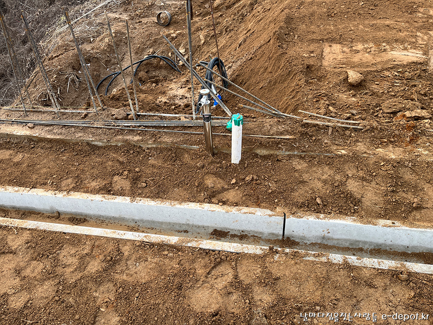 가동 정원쪽 바베큐장에서 사용될 개수대 설치를 위한 수도와 배수관.