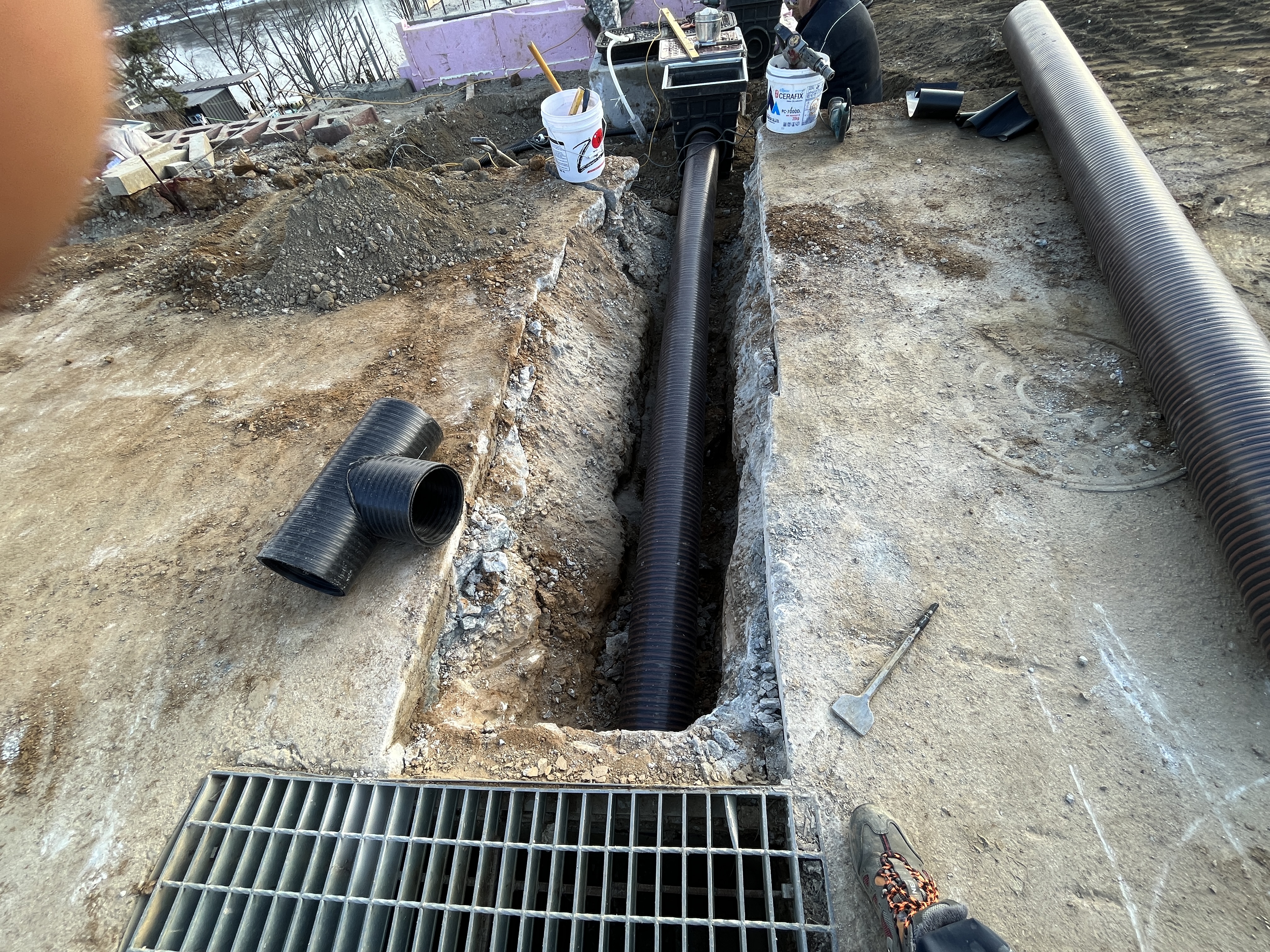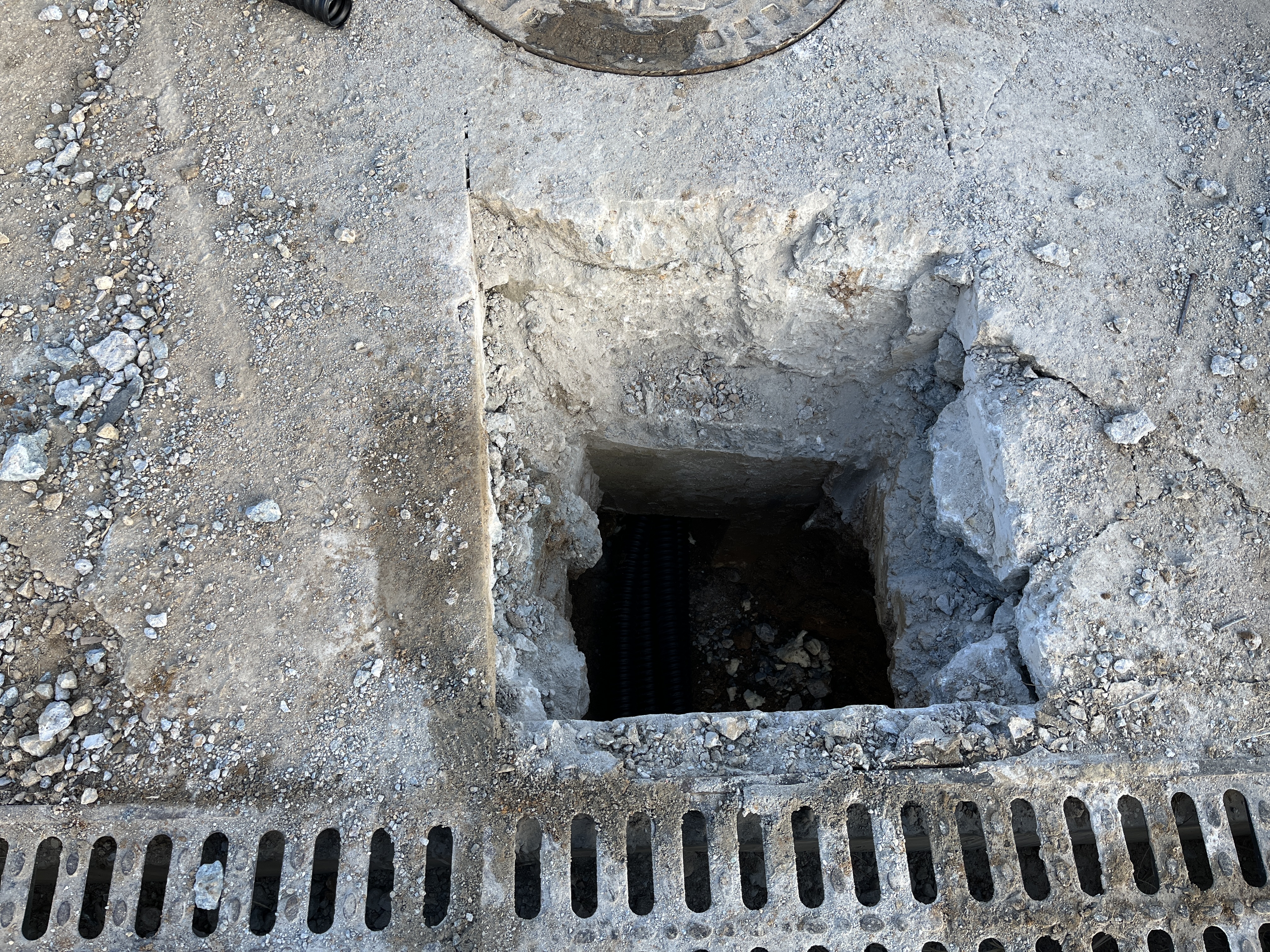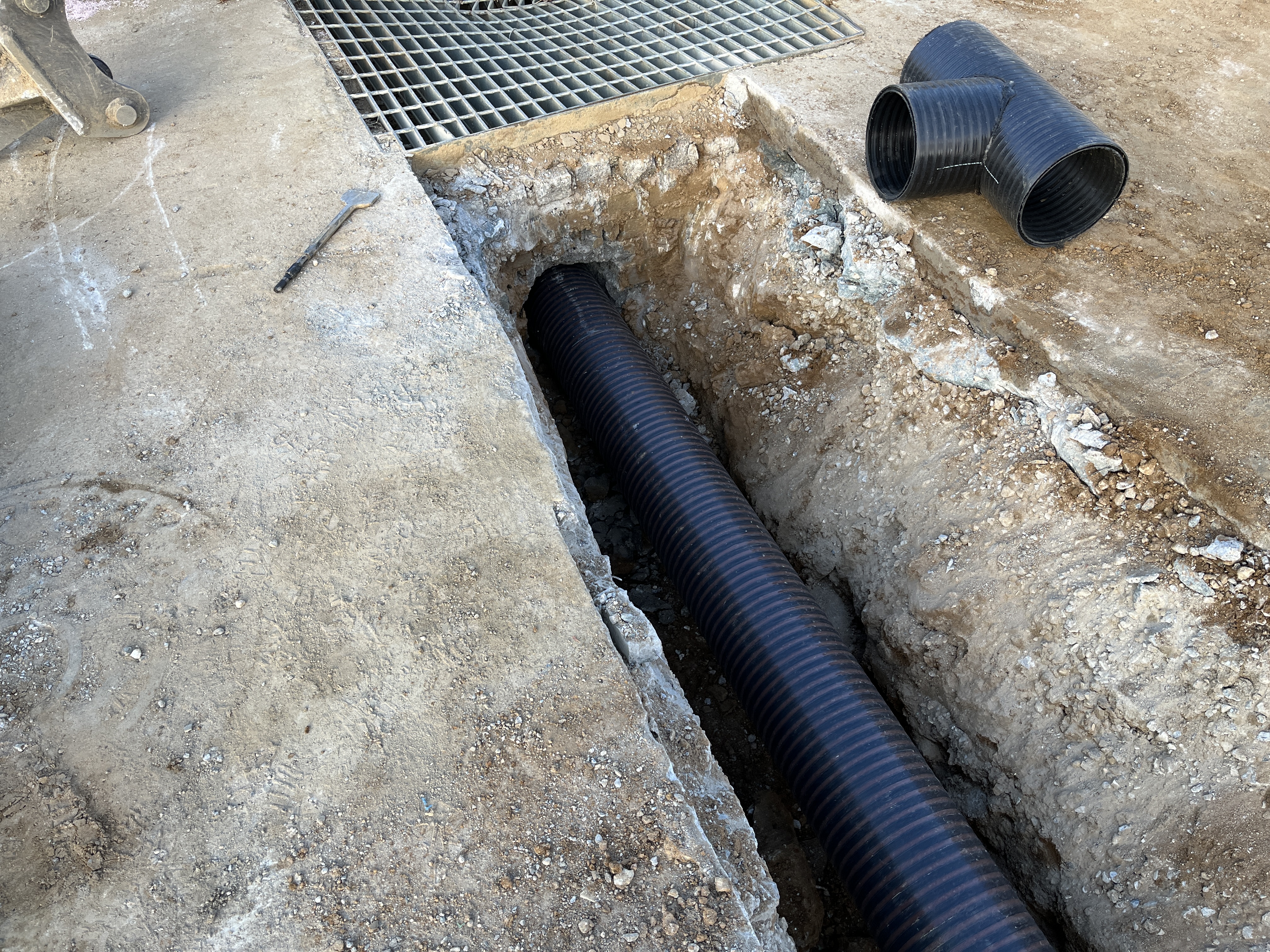 부지내 우수관을 공동우수맨홀에 연결하는 작업입니다.