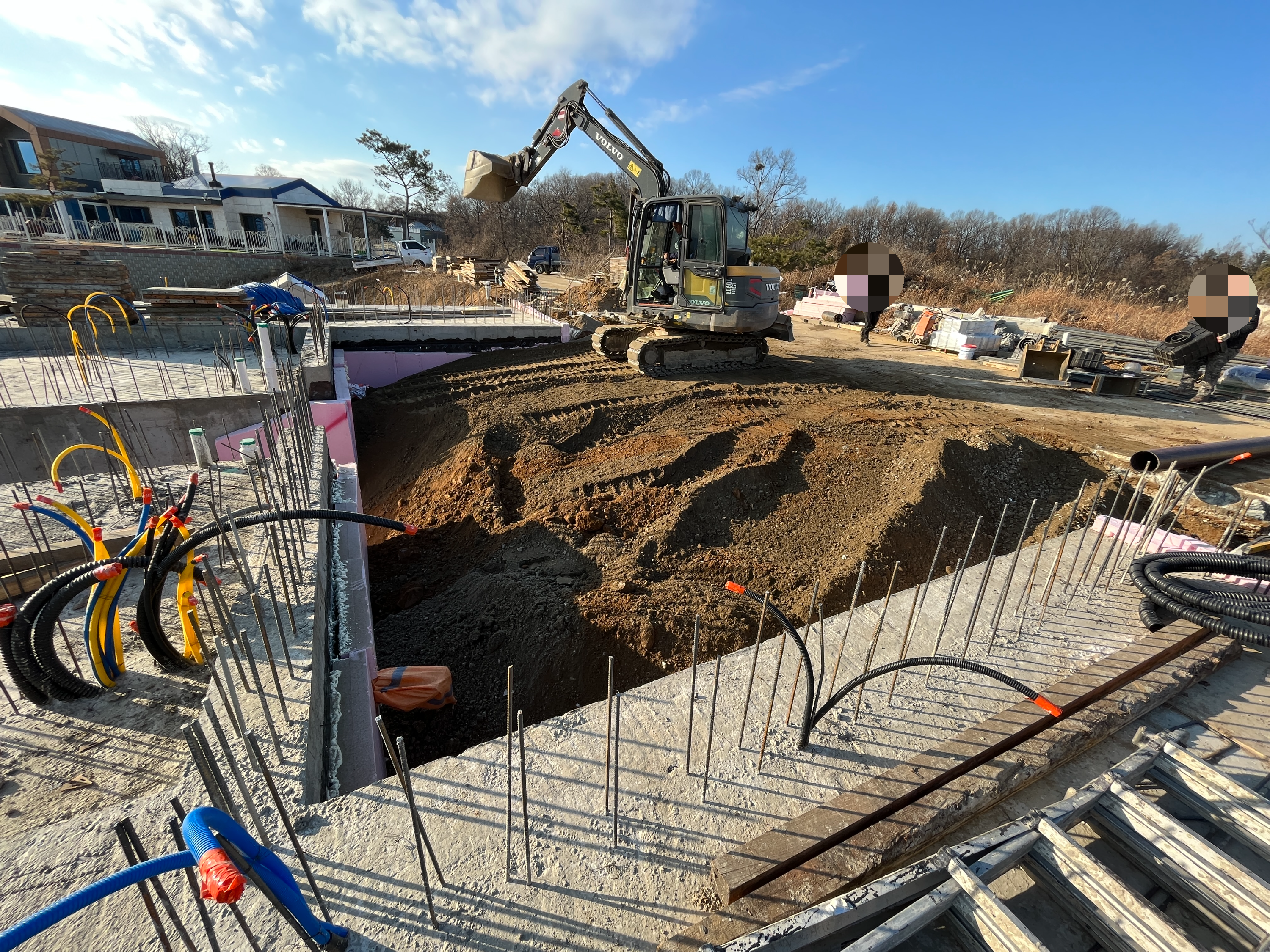 날마다집을짓는사람들의 연천 풀빌라펜션 신축현장 외부배관 및 되메우기 작업 과정이었습니다.