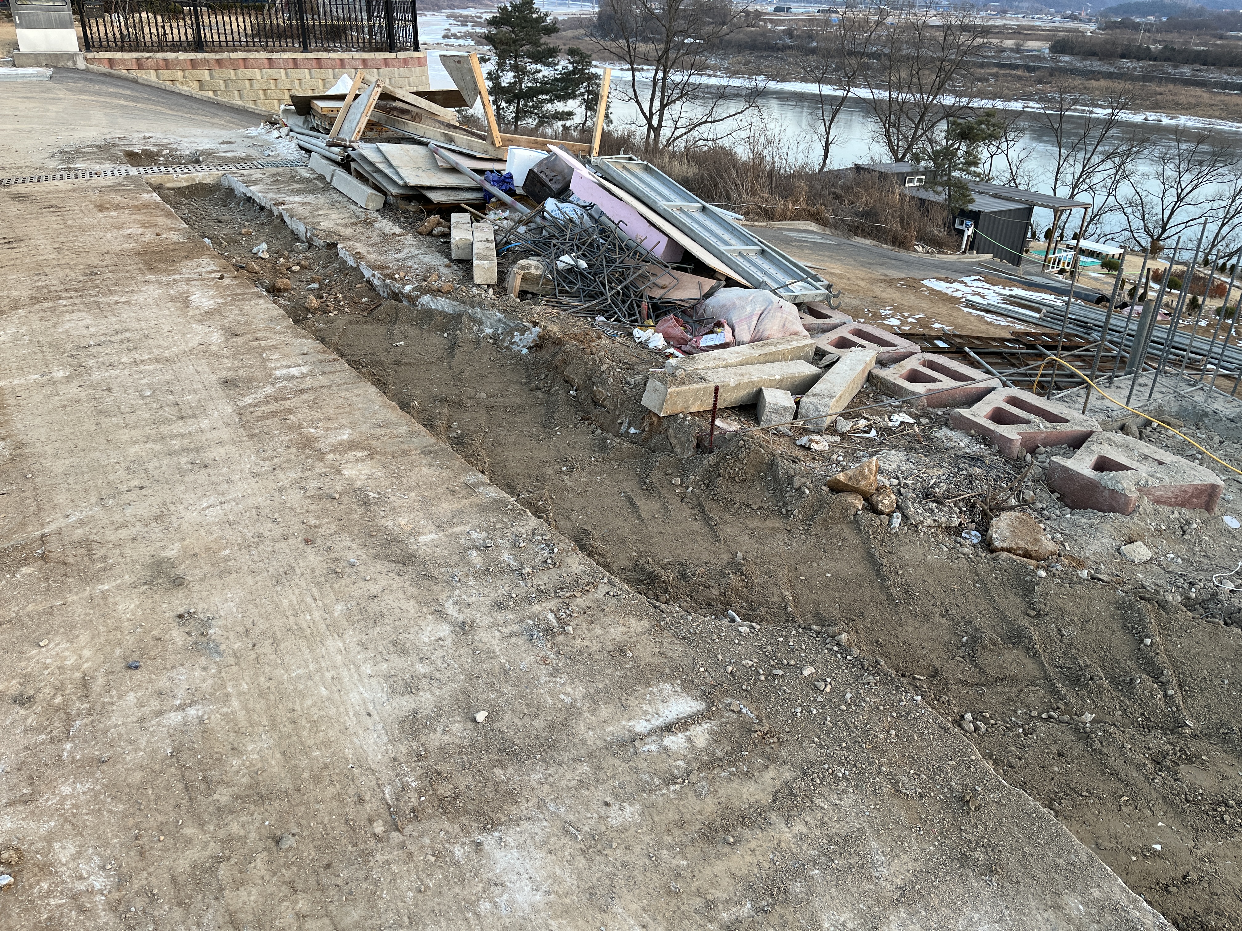 되메우기 후 땅의 침하되는것을 최소화하기 위해 잡석지정작업을 하고 다짐작업을 철저히 하도록 합니다.
