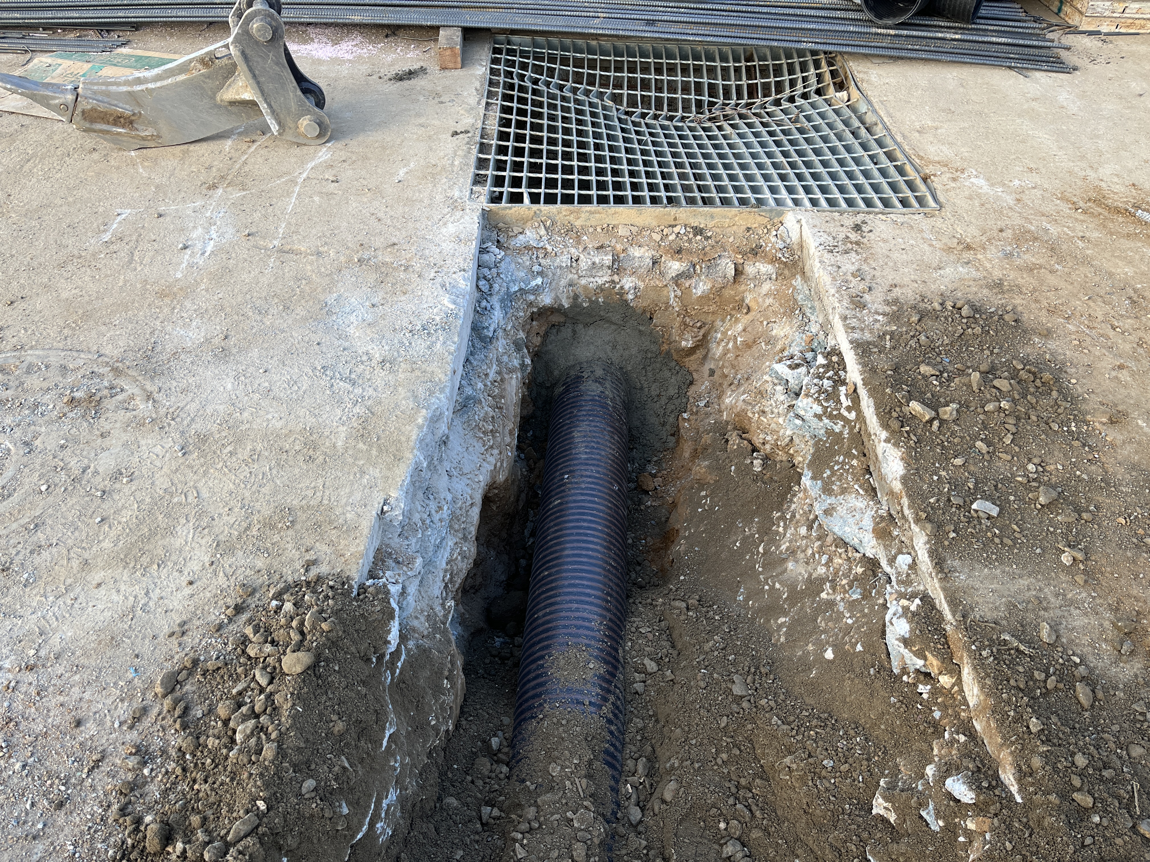 도로방향 우수트랜치 하부로 배관을 유도합니다.