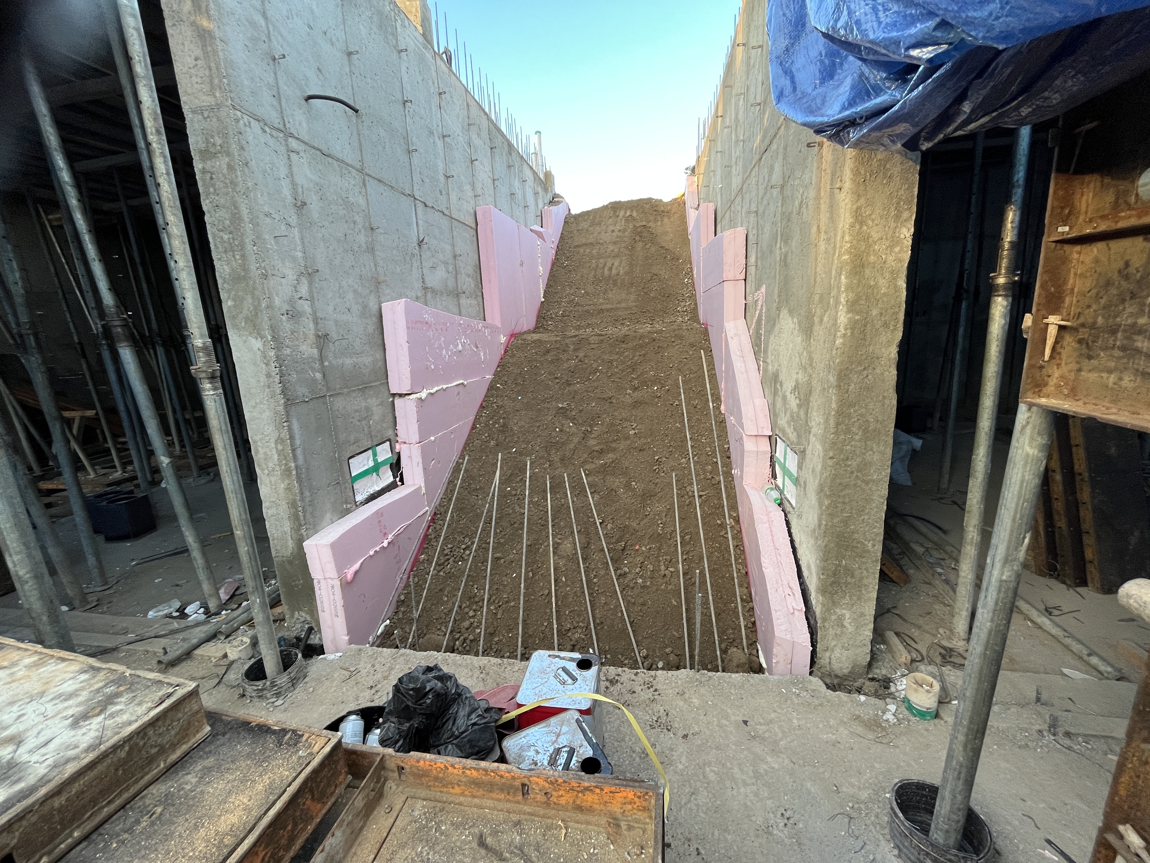 중앙 계단면의 되메우기 작업.