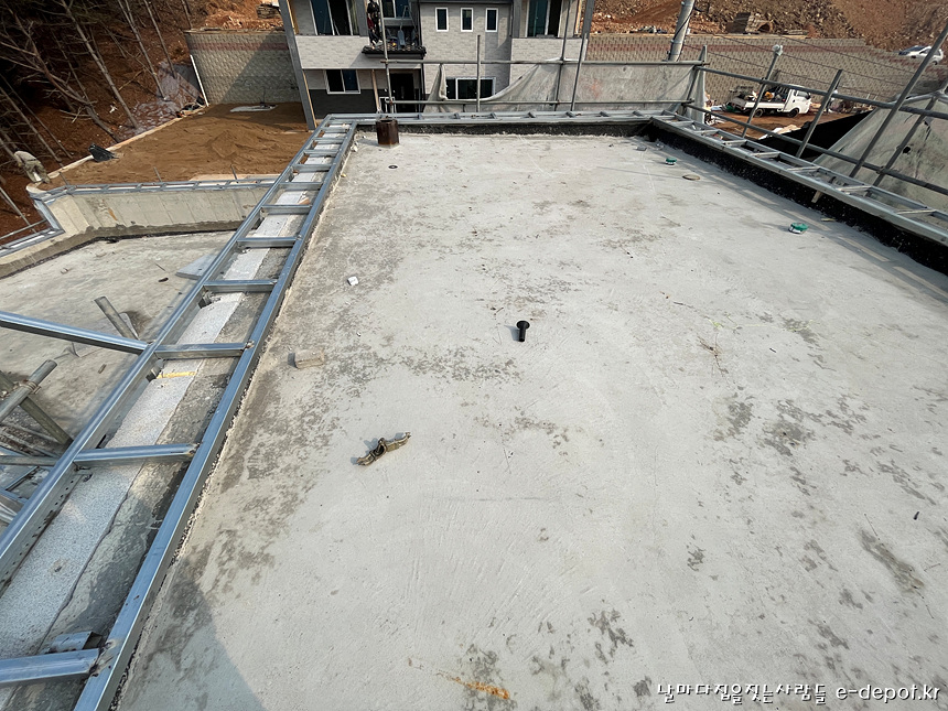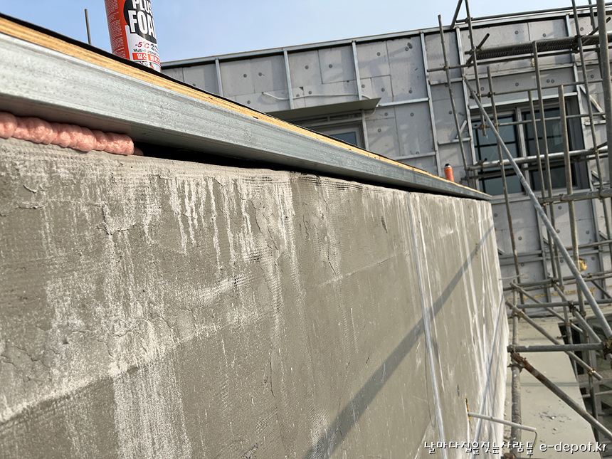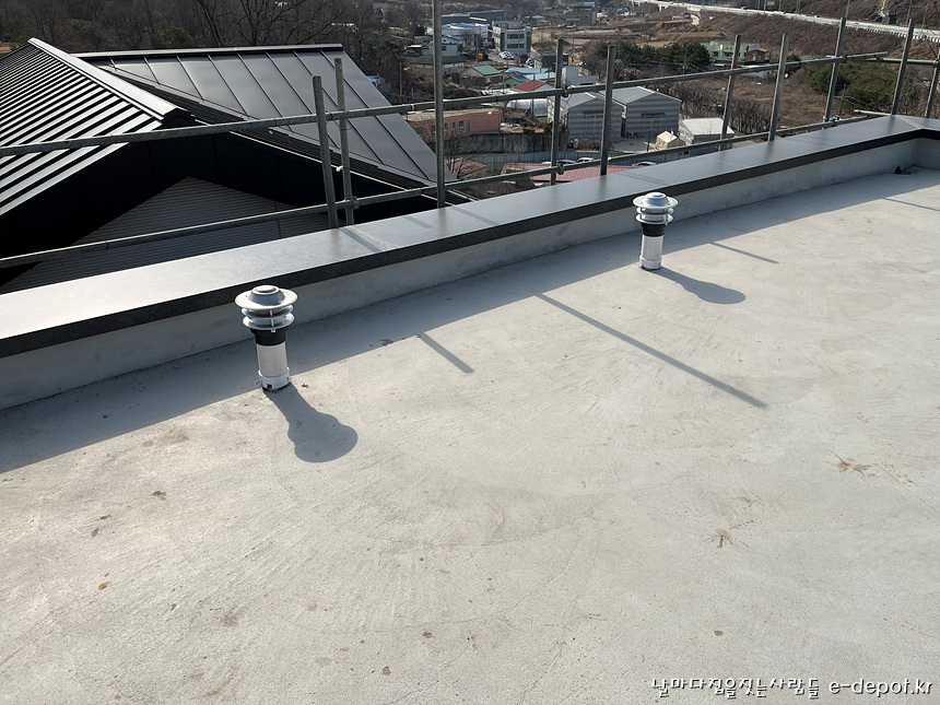 징크를 최종 덮기전에 각파이프와 콘크리트면의 미장 마감 사진입니다.