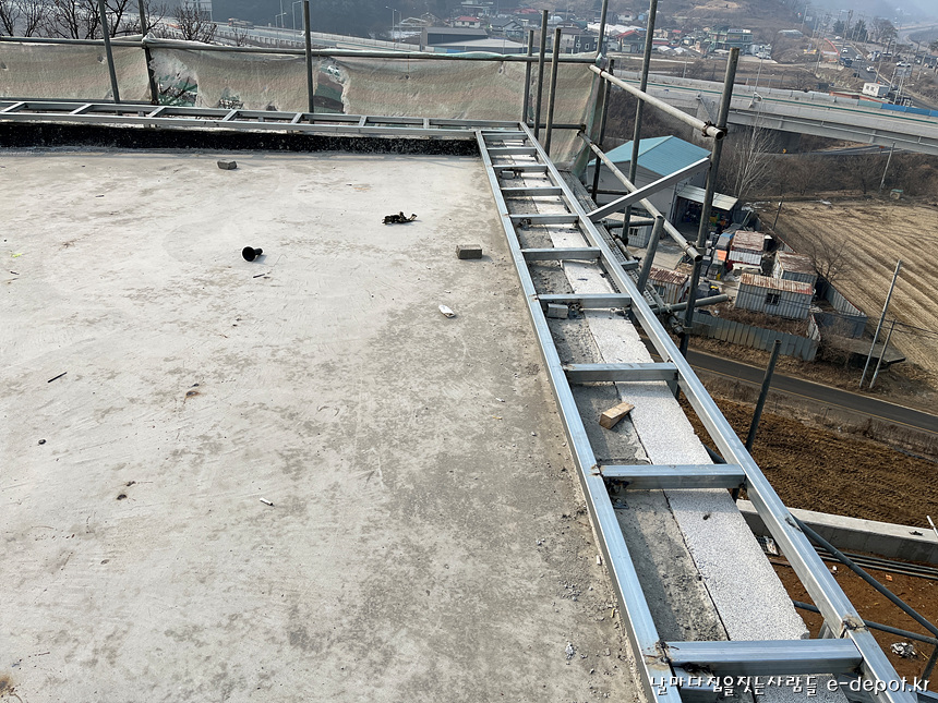 각파이프에 징크를 직접 시공하는방법은 절대 안되고 반드시 합판을 먼저 시공하여야 합니다.
