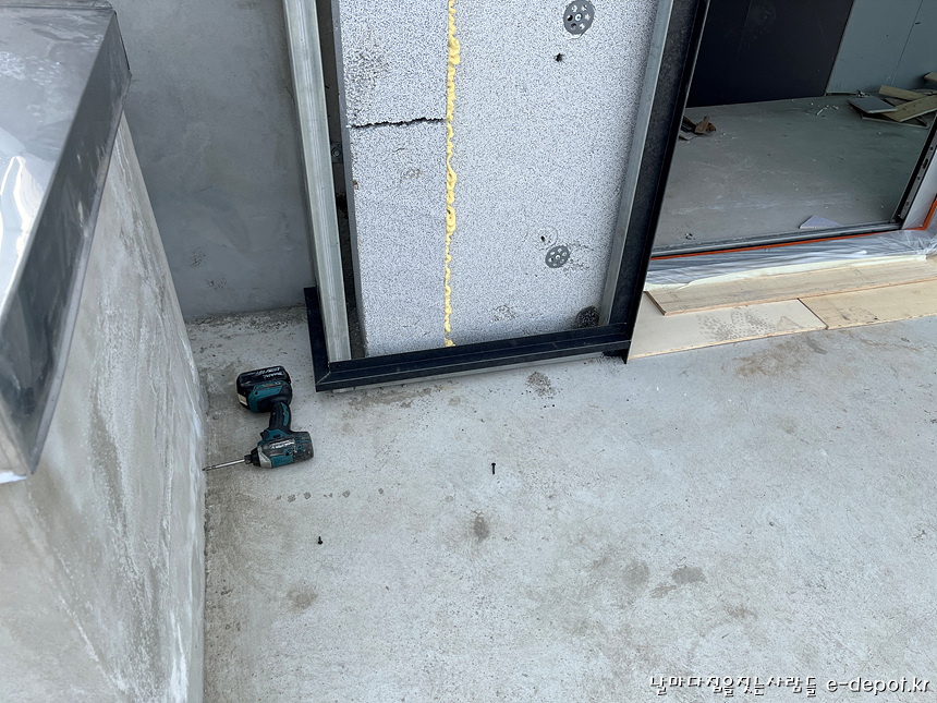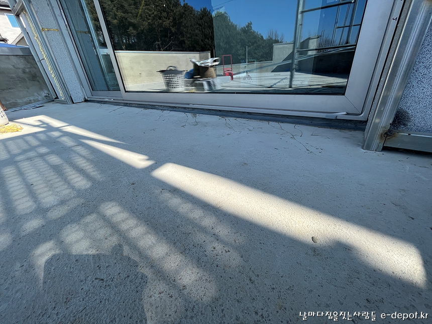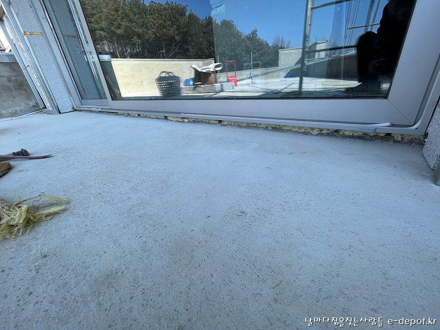 외부로 통하는 창호 하부는 누수에 대비하여 우레탄 계열 코킹을 사용하여 기밀하게 씰링작업을 하도록 합니다.