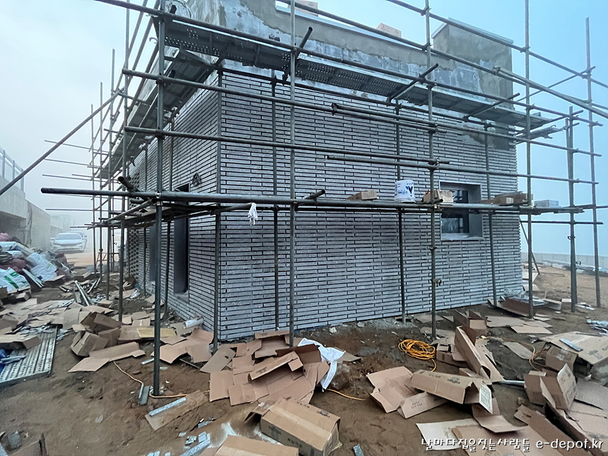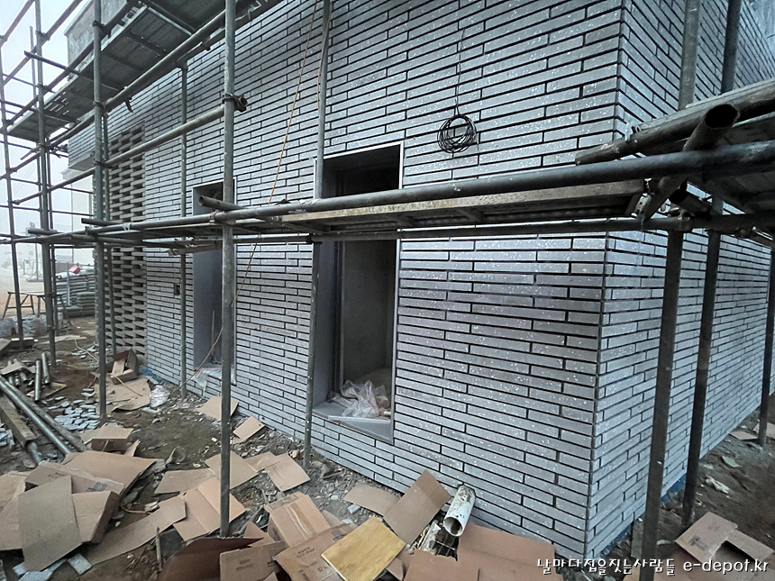 좌측면 파벽돌 시공 중 사진입니다.