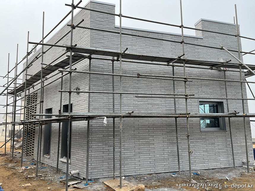파주전원주택시공 외부마감을 럭스틸과 파벽돌 시공과정