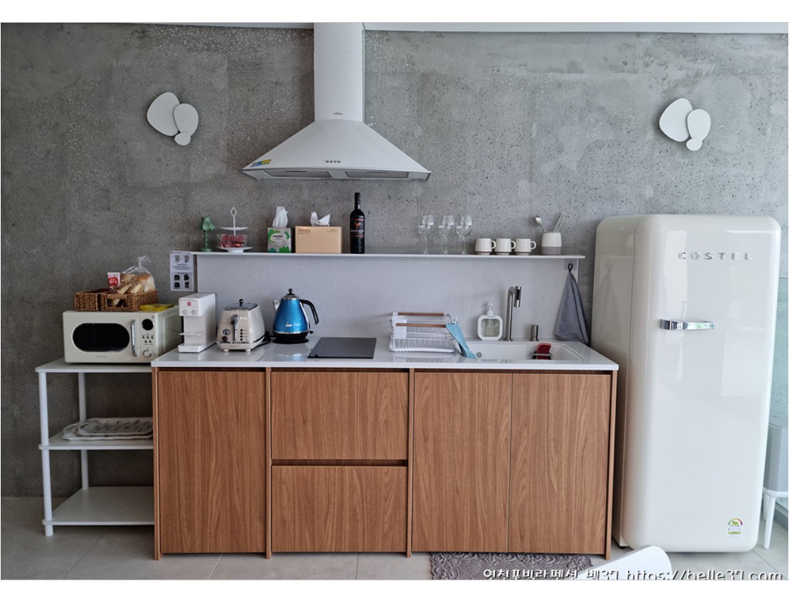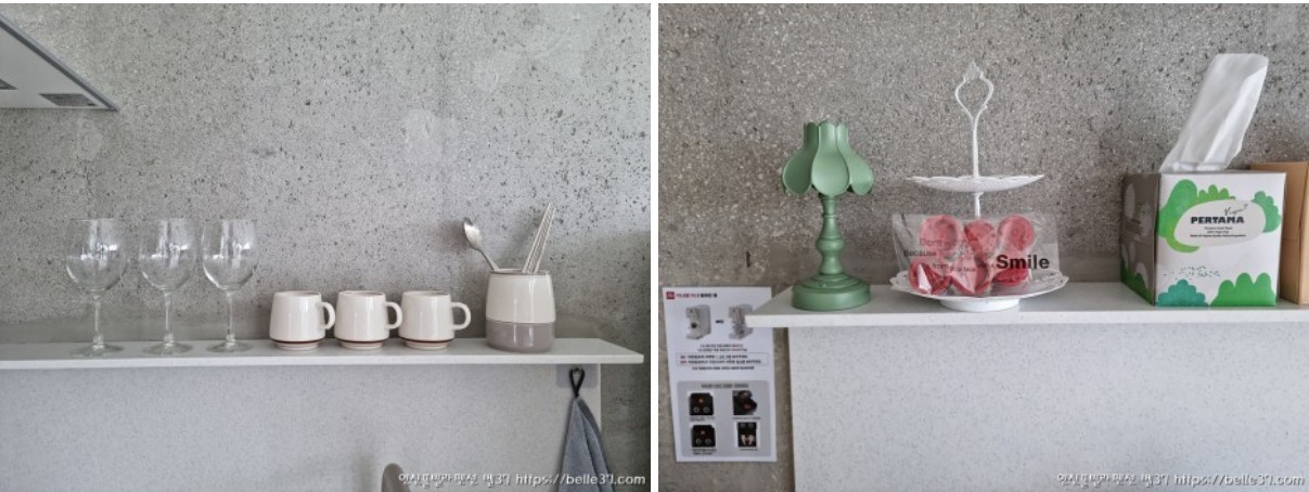 주방 선반에는 와인잔과 커피잔이 기본적으로 셋팅되어 있구요