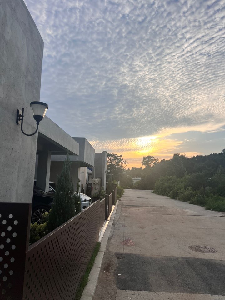 도로와 연결된 연천 풀빌라펜션 벨37의 2층 주차장에서 바라본 석양 노을 한컷~