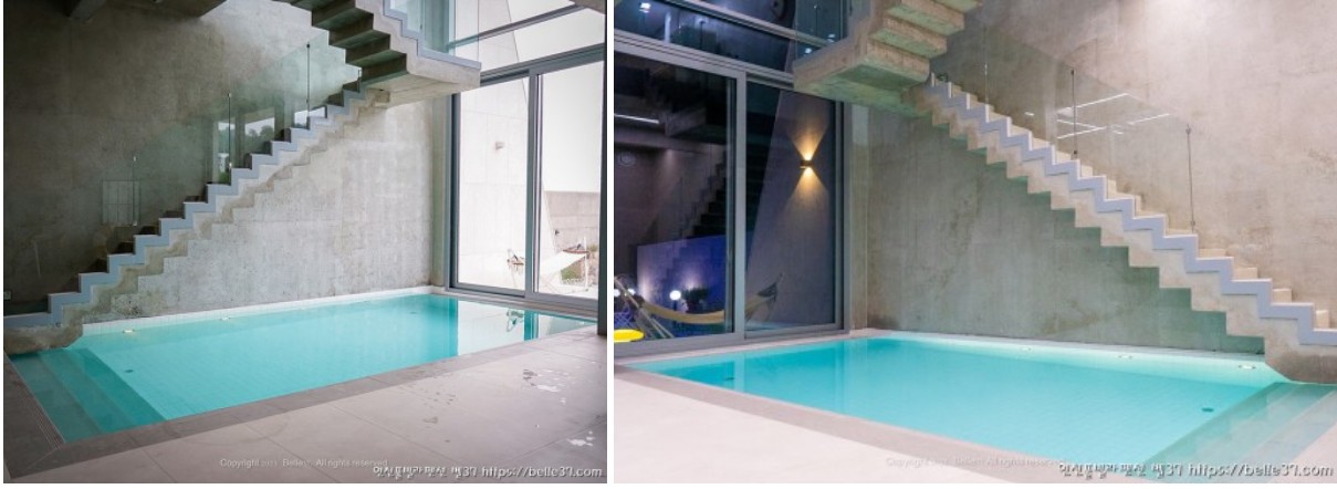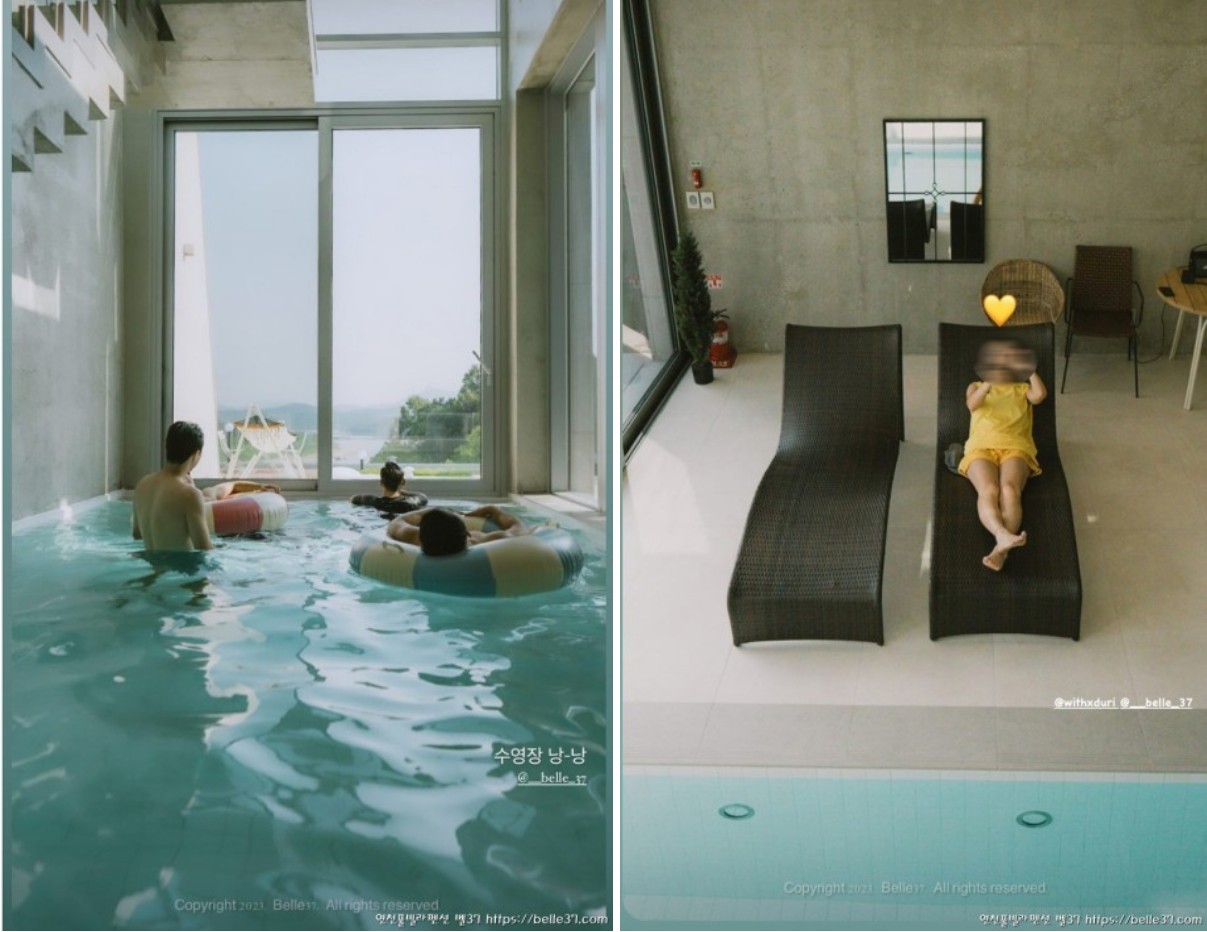 연천 풀빌라펜션 벨37의 하일라이트 4계절 실내 온수수영장이 있는 1층을 살펴보도록 할께요~