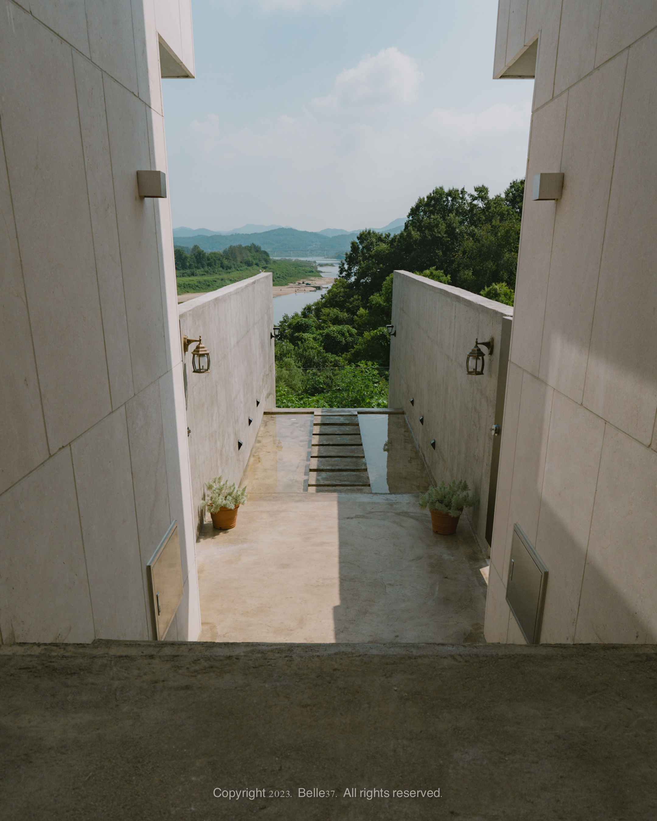 중앙 계단에는 별도의 수공간이 마련되어 있어 액자같은 임진강 뷰를 감상하고 멋진 사진을 연출할 수 있는 포토죤이랍니다.