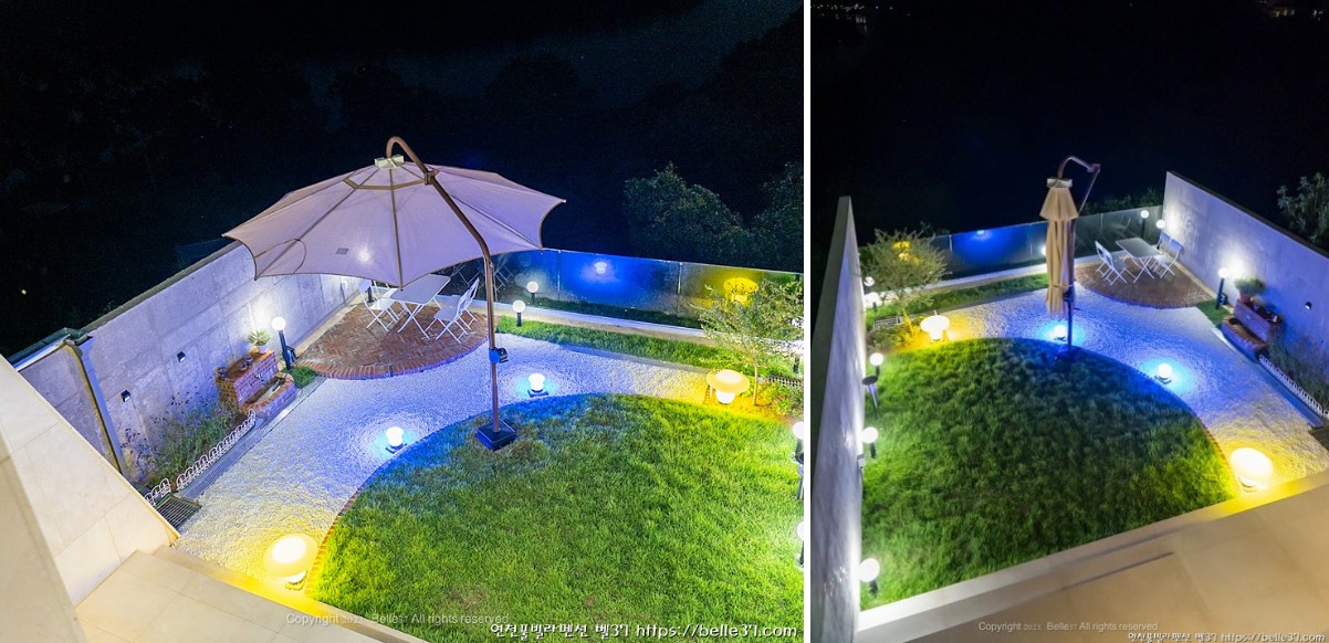 2층 테라스에서 바라본 정원 전경(야간)