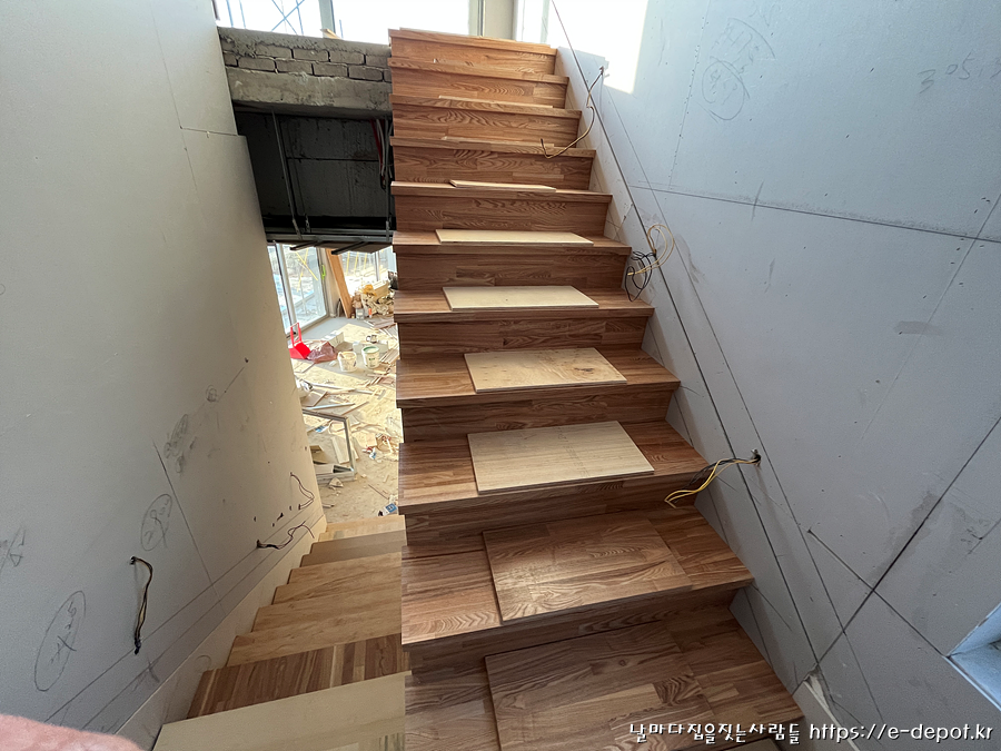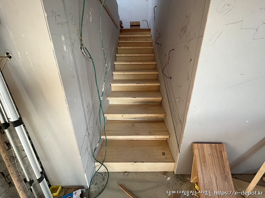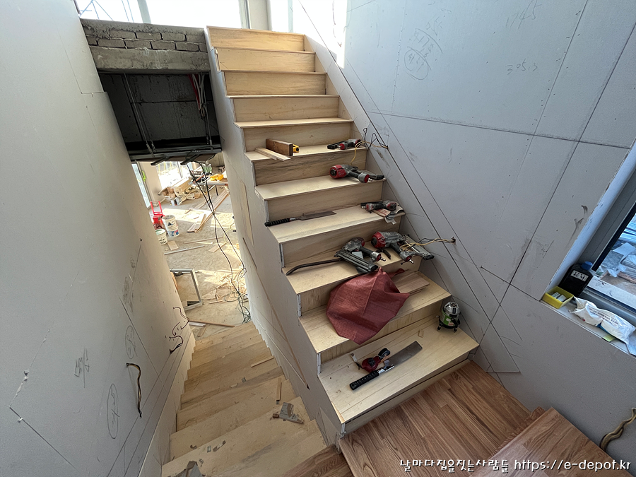 날마다집을짓는사람들의 파주 전원주택 시공사례. 내부 계단 시공 과정이었습니다.