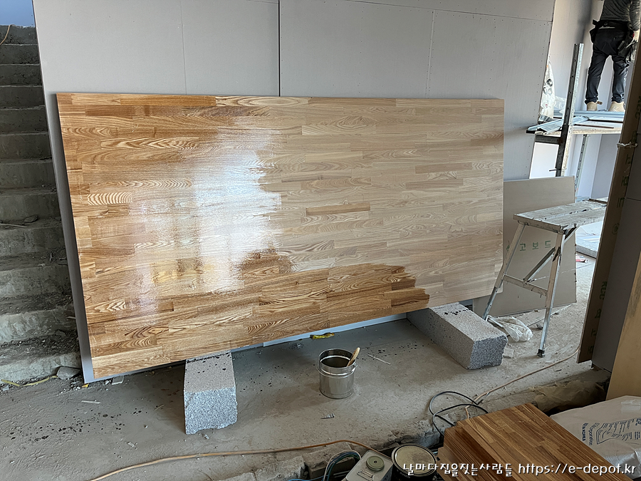 계단 마감재는 시공전에 목재용 하도 칠을 먼저 발라놓는것이 좋습니다.