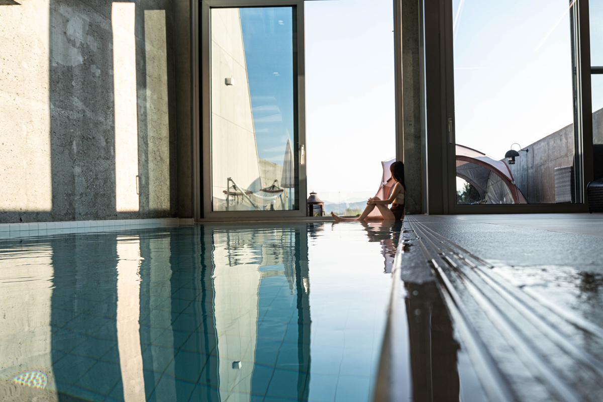 벨37 독채풀빌라는 4계절 물놀이가 가능한 대형 실내 온수 수영장을 갖추고 있습니다.