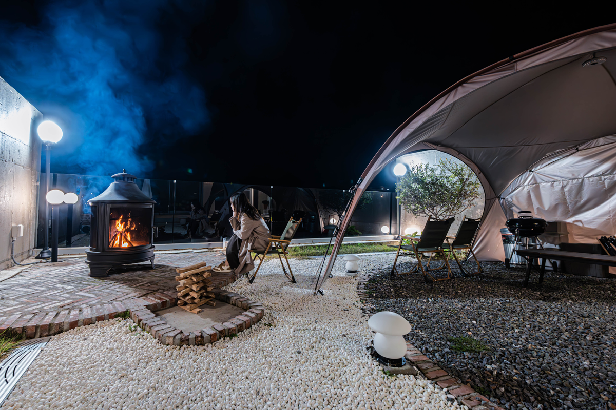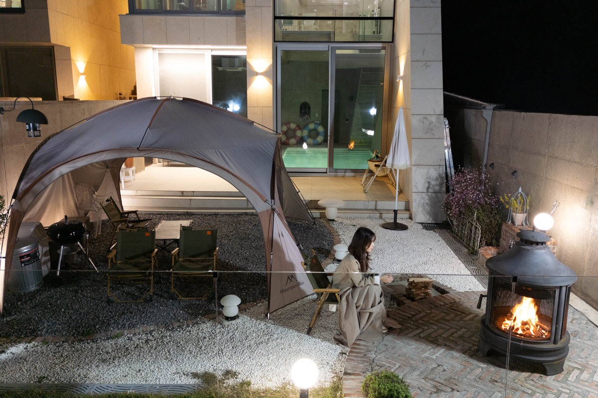 4계절 실내 온수 수영장과 연결된 야외 정원 데크에서는 바비큐와 불멍을 할 수 있으며 사랑하는 이들과 함께 할 수 있는 넓은 공간이 조성되어 있습니다.