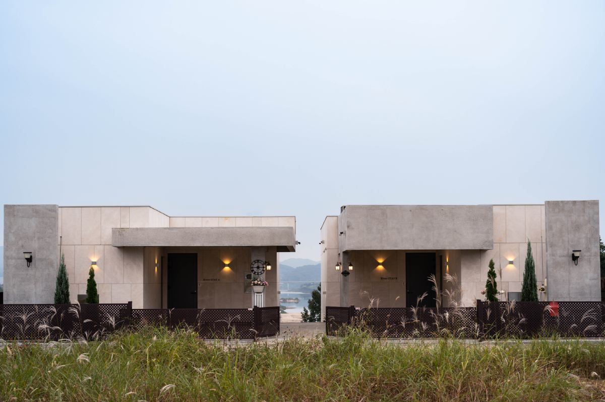 리버스테이 A동과 리버스테이 B동 2개동으로 되어 있으며 프라이빗하게 휴식을 취할 수 있는 독채풀빌라를 컨셉으로 지어진 건물이라 건물간 측간 소음을 근본적으로 차단하기 위해 A동과 B동을 별도로 건축하였습니다. A동과 B동 사이 공간에는 공용계단을 만들어 기초부터 별도로 신축하여 측간 소음이 전혀 없는 구조이며 필요에 의해 필지를 분할 가능하도록 만들어진 건물이므로 차후에 분할도 가능합니다.