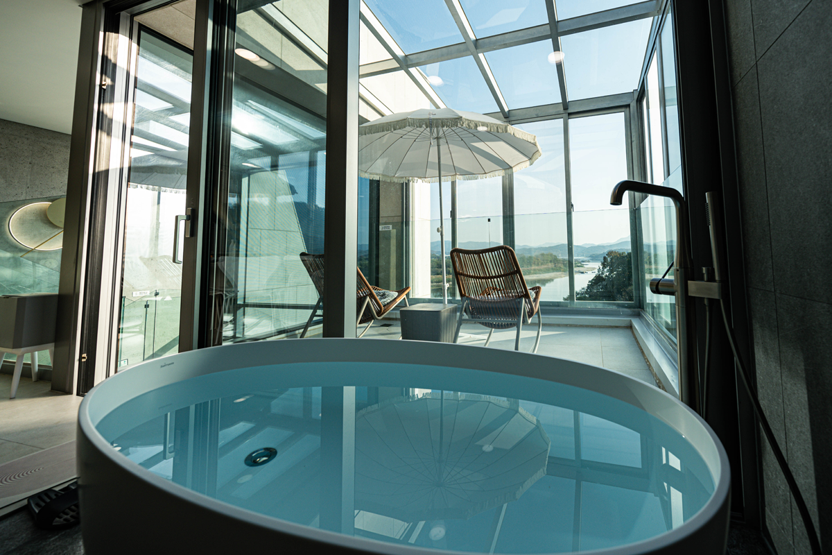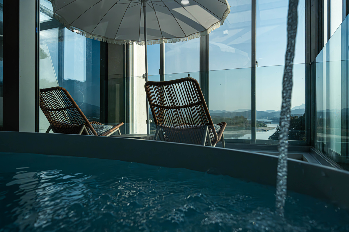 임진강 최고의 리버뷰를 품고 있는 연천 5성급 럭셔리풀빌라는 Private Pool 사계절 온수 수영장과 자쿠지 그리고 수공간의 특별한 만남으로 편안한 휴식과 낭만의 시간을 보낼 수 있는 특별한 추