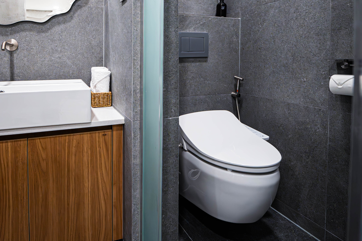 유럽식 벽걸이 양변기로 쾌적합니다.