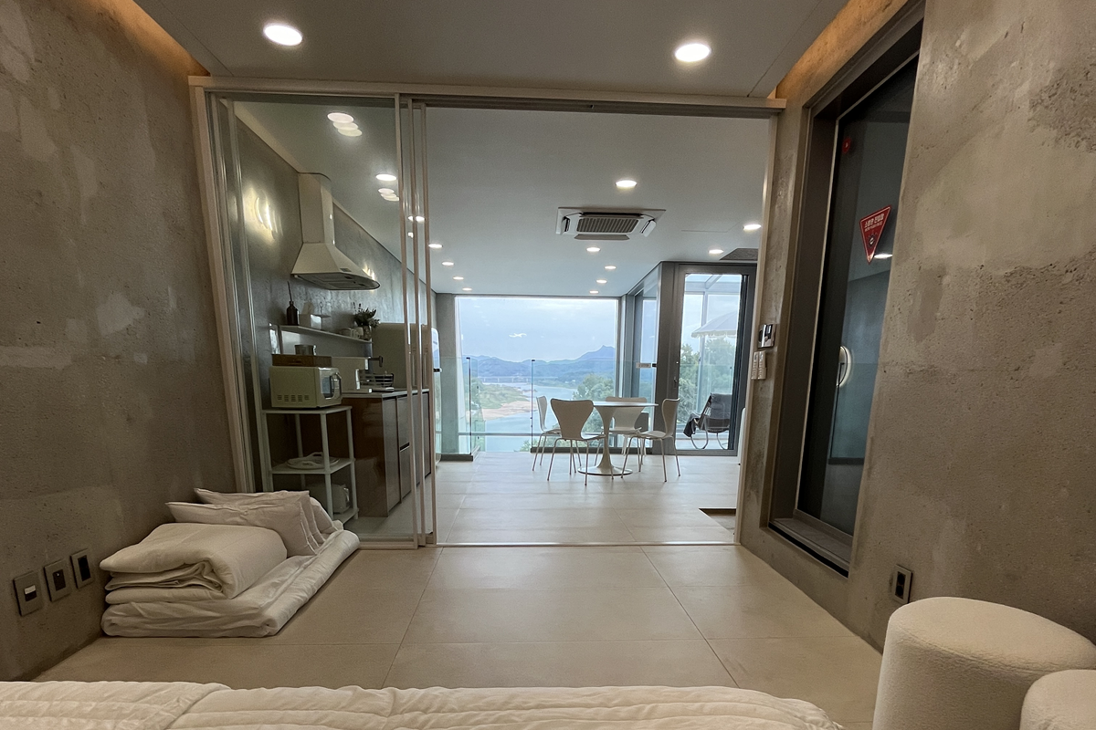 벨37 독채풀빌라는 침실에 누워서도 임진강 리버뷰를 개방감있게 감상할 수 있습니다.