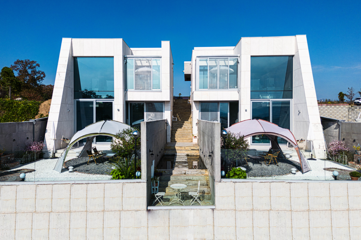 벨37 독채풀빌라는 리버스테이 A, B동 사이 공간을 띄어 수공간을 만들고 2층 주차장에서 공용계단을 통해 수공간으로 내려 갈 수 있으며 리버스테이 A동과 리버스테이 B동 1층에도 수공간으로 출입할 수 있도록 별도로 문이 있습니다. 동시에 2개동을 예약할 경우 1층 출입문을 통해서 연결이 되므로 2개동 전체를 독채로 사용할 수 있습니다.
