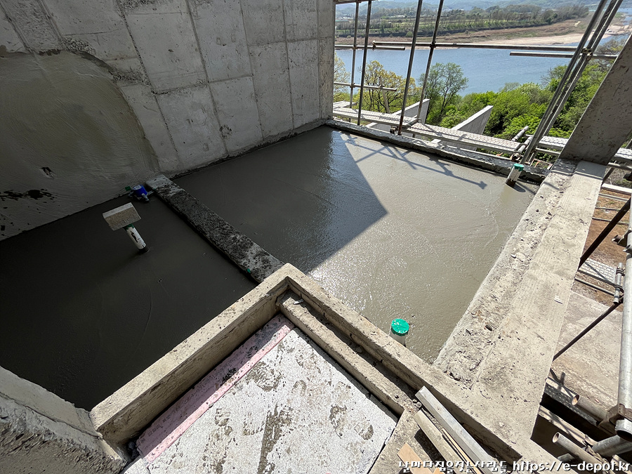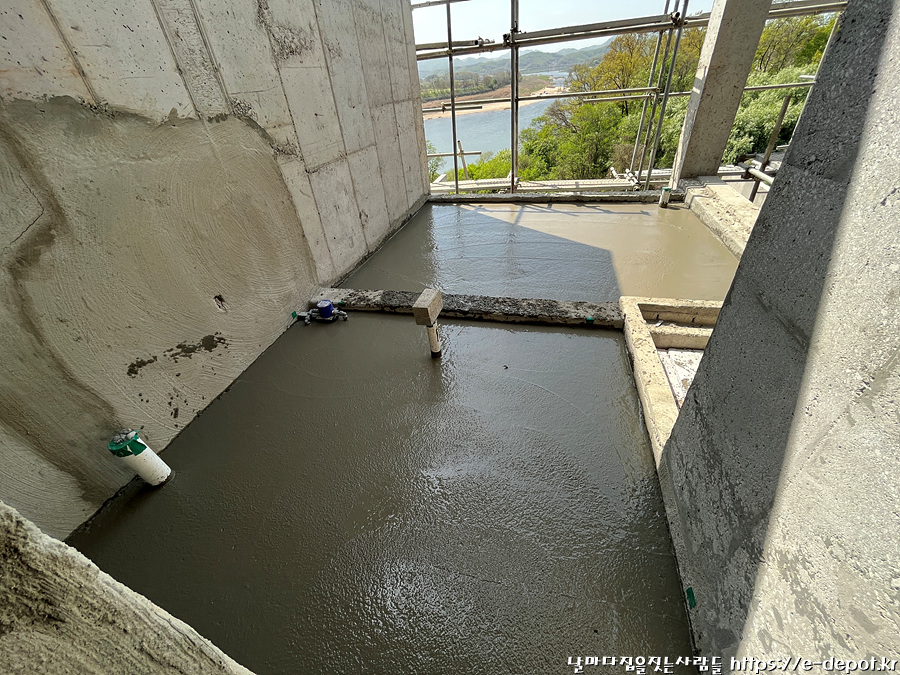 2층 욕실과 테라스의 누름콘크리트 타설