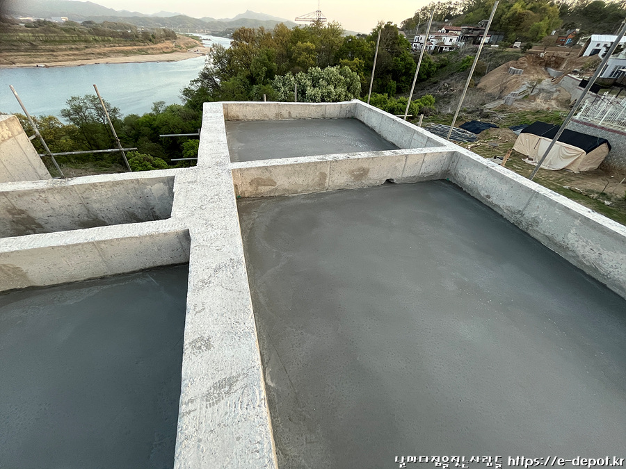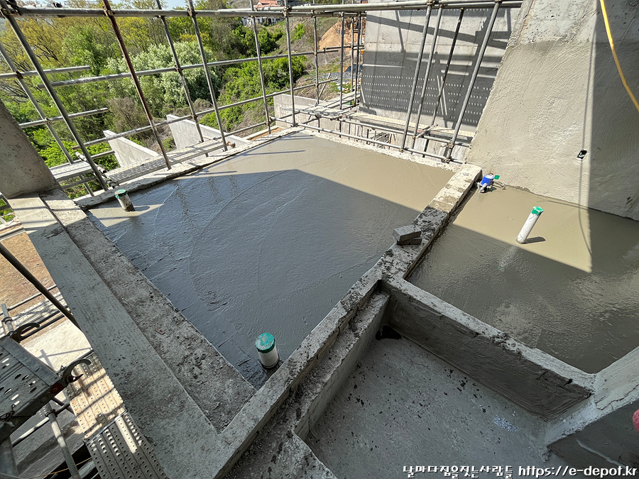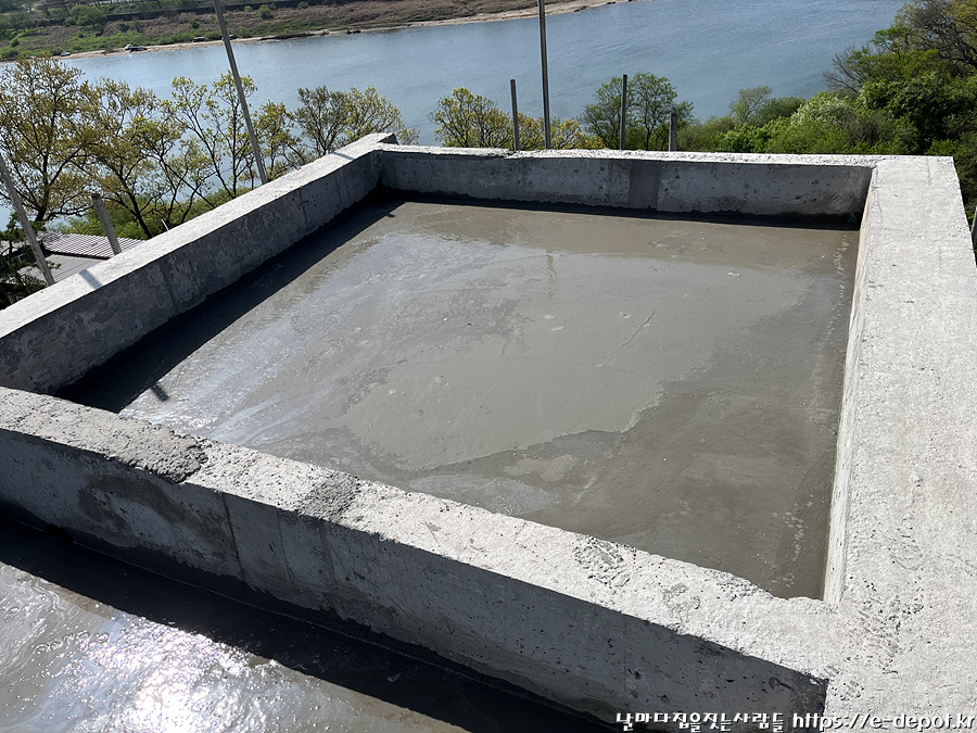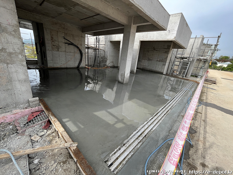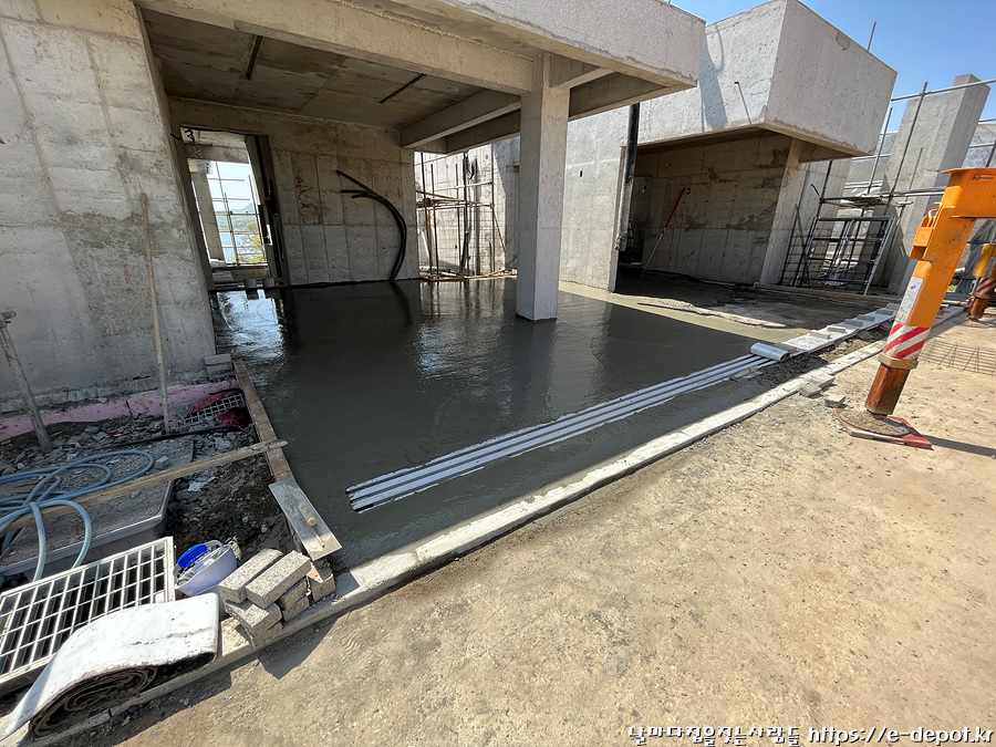 날마다 집을 짓는 사람들의 서울근교 연천 독채풀빌라 펜션 벨37 신축일지. 누름콘크리트 타설 과정이었습니다.